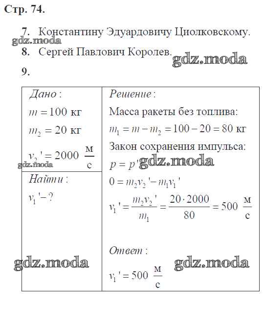 ГДЗ решение к заданию № 74 Физика 9 класс рабочая тетрадь Касьянов В.А. (к уч. Перышкина А.В.) Дрофа 2017 ФГОС бесплатно на гдз.мода!