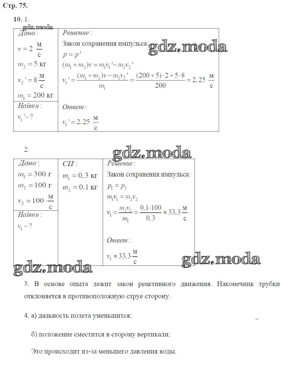ГДЗ решение к заданию № 75 Физика 9 класс рабочая тетрадь Касьянов В.А. (к уч. Перышкина А.В.) Дрофа 2017 ФГОС бесплатно на гдз.мода!