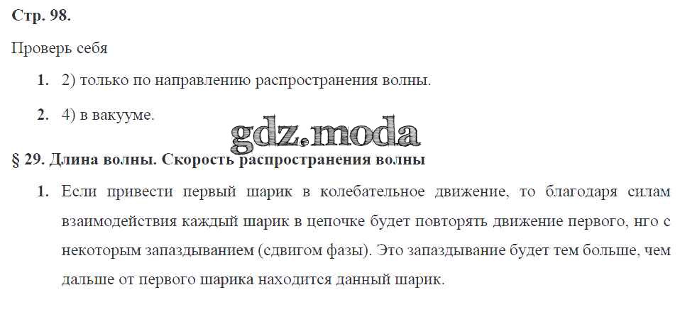 ГДЗ решение к заданию № 98 Физика 9 класс рабочая тетрадь Касьянов В.А. (к уч. Перышкина А.В.) Дрофа 2017 ФГОС бесплатно на гдз.мода!