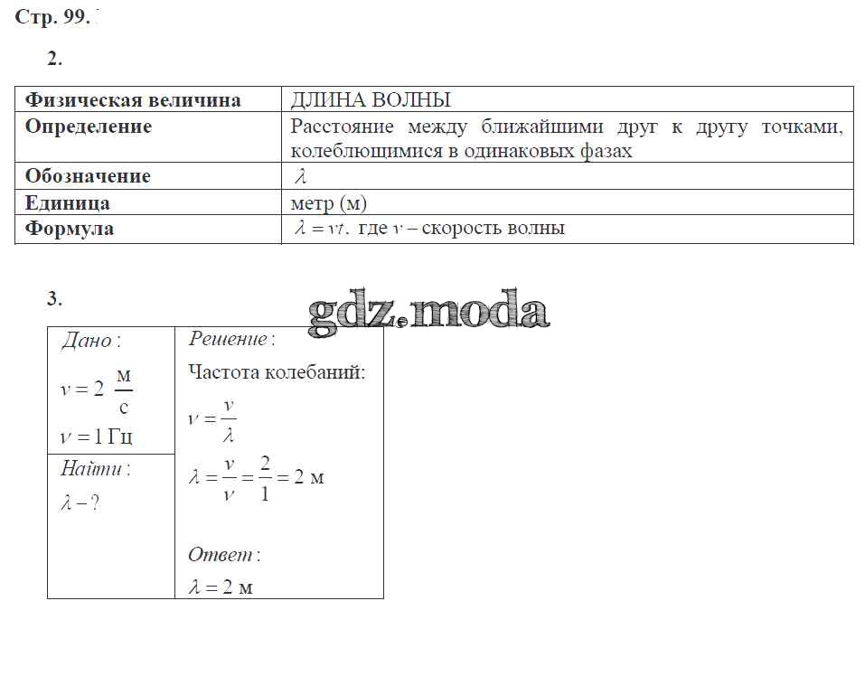 ГДЗ решение к заданию № 99 Физика 9 класс рабочая тетрадь Касьянов В.А. (к уч. Перышкина А.В.) Дрофа 2017 ФГОС бесплатно на гдз.мода!