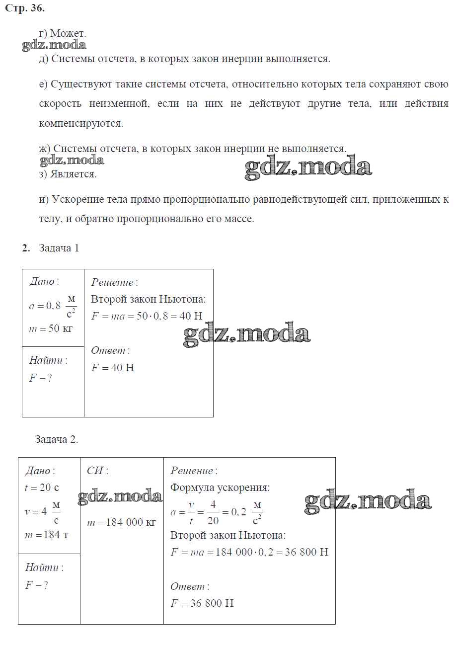ГДЗ решение к заданию № 36 Физика 9 класс рабочая тетрадь Минькова Р.Д. (к уч. Перышкина А.В.) Экзамен 2015 ФГОС бесплатно на гдз.мода!
