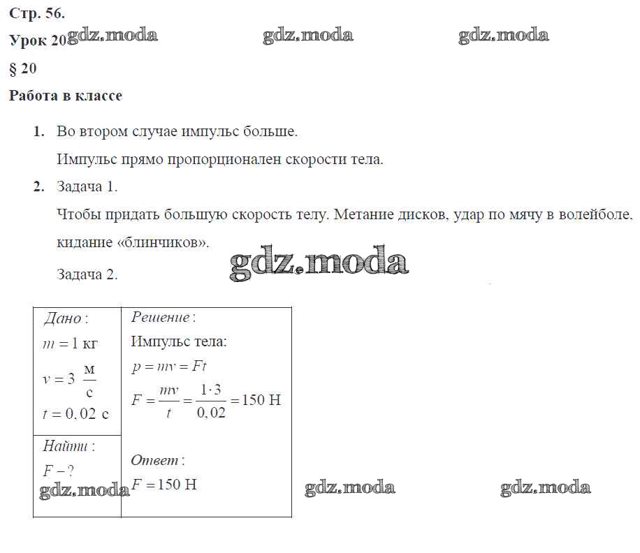 ОТВЕТ на задание № 56 Рабочая тетрадь по Физике 9 класс Минькова УМК