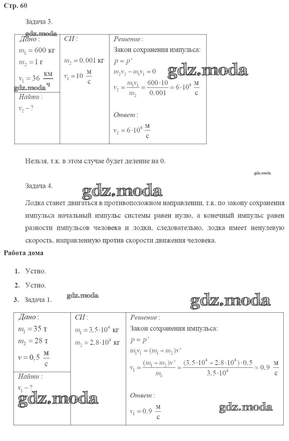 ОТВЕТ на задание № 60 Рабочая тетрадь по Физике 9 класс Минькова УМК