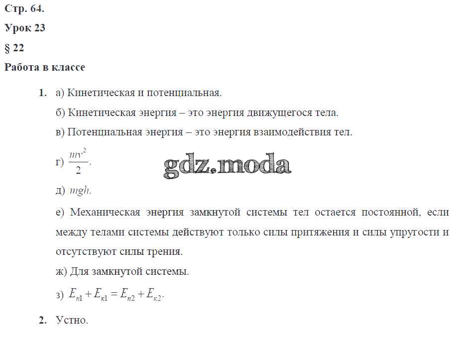 ОТВЕТ на задание № 64 Рабочая тетрадь по Физике 9 класс Минькова УМК