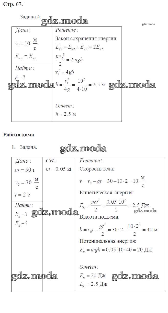ОТВЕТ на задание № 67 Рабочая тетрадь по Физике 9 класс Минькова УМК