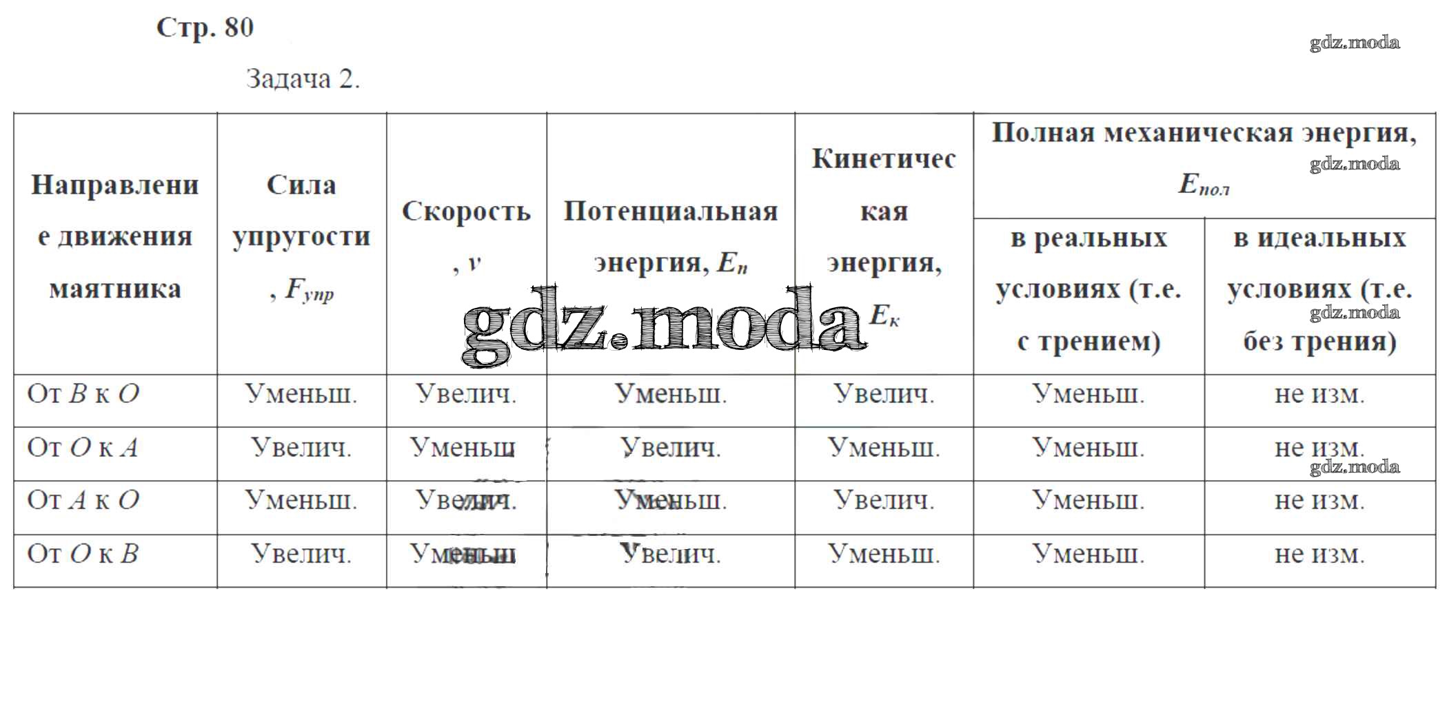 ОТВЕТ на задание № 80 Рабочая тетрадь по Физике 9 класс Минькова УМК