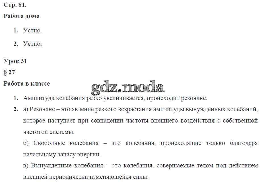 ОТВЕТ на задание № 81 Рабочая тетрадь по Физике 9 класс Минькова УМК