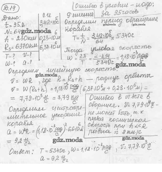 ГДЗ решение к заданию № 19 Физика 7-9 класс Сборник задач Лукашик В.И. Просвещение 2011 ФГОС бесплатно на гдз.мода!