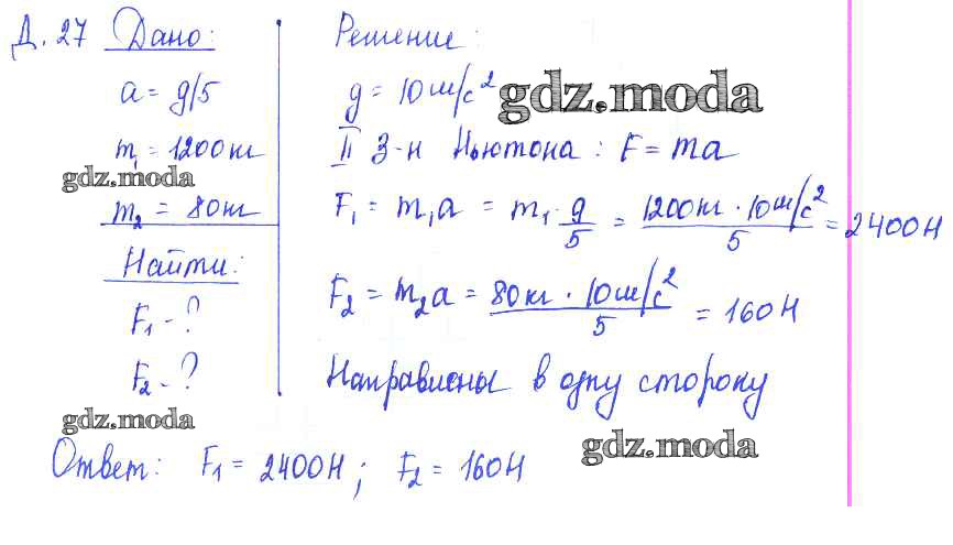 ГДЗ решение к заданию № 27 Физика 7-9 класс Сборник задач Лукашик В.И. Просвещение 2011 ФГОС бесплатно на гдз.мода!