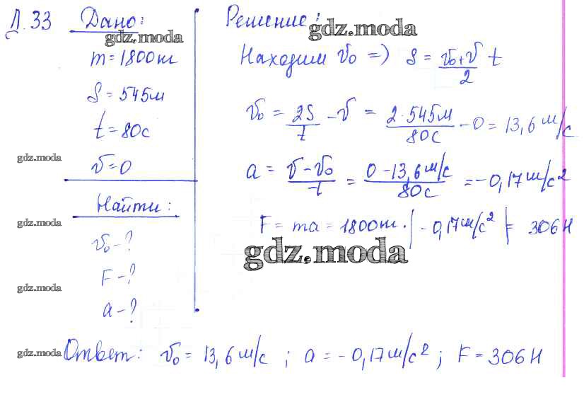 ГДЗ решение к заданию № 33 Физика 7-9 класс Сборник задач Лукашик В.И. Просвещение 2011 ФГОС бесплатно на гдз.мода!