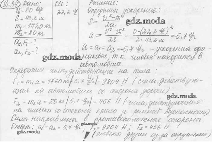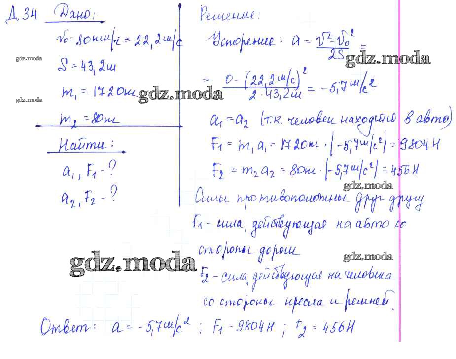 ГДЗ решение к заданию № 34 Физика 7-9 класс Сборник задач Лукашик В.И. Просвещение 2011 ФГОС бесплатно на гдз.мода!