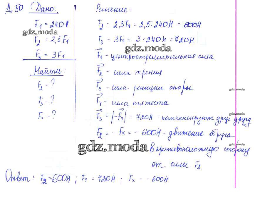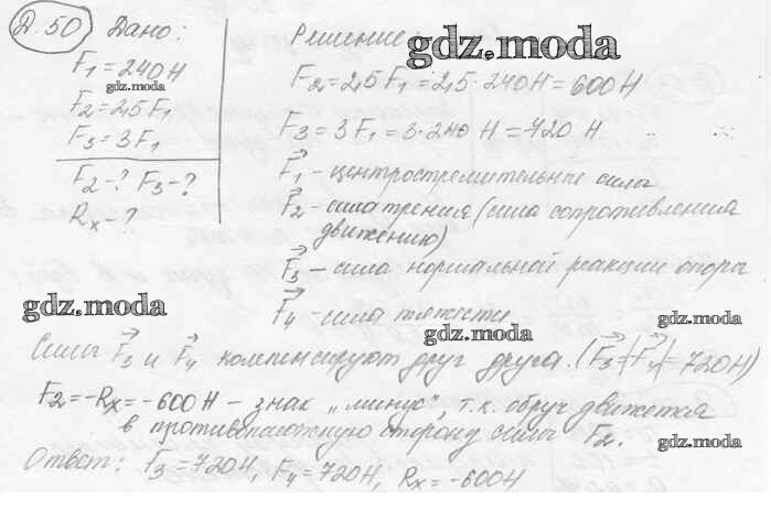 ГДЗ решение к заданию № 50 Физика 7-9 класс Сборник задач Лукашик В.И. Просвещение 2011 ФГОС бесплатно на гдз.мода!