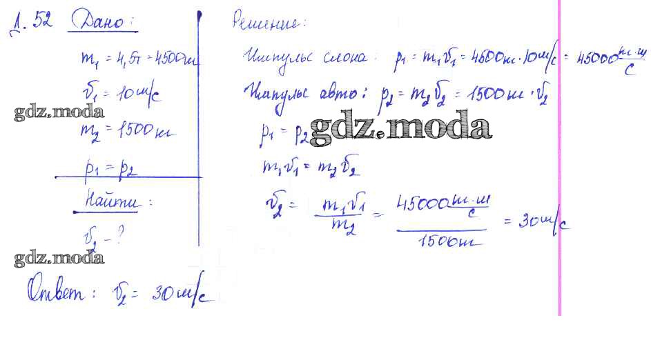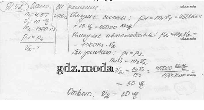 ГДЗ решение к заданию № 52 Физика 7-9 класс Сборник задач Лукашик В.И. Просвещение 2011 ФГОС бесплатно на гдз.мода!