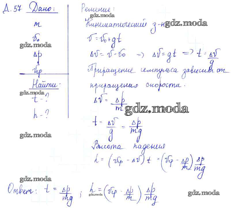 ГДЗ решение к заданию № 57 Физика 7-9 класс Сборник задач Лукашик В.И. Просвещение 2011 ФГОС бесплатно на гдз.мода!