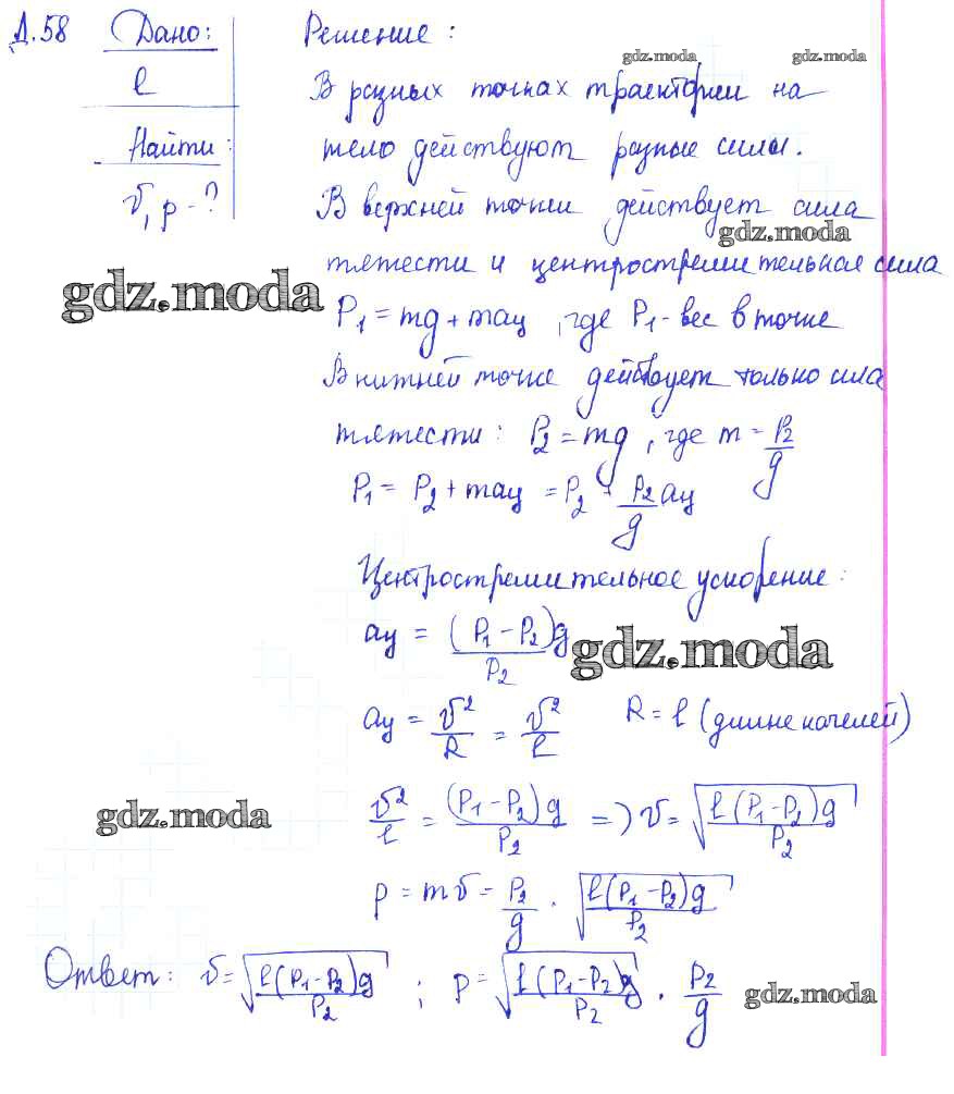 ГДЗ решение к заданию № 58 Физика 7-9 класс Сборник задач Лукашик В.И. Просвещение 2011 ФГОС бесплатно на гдз.мода!
