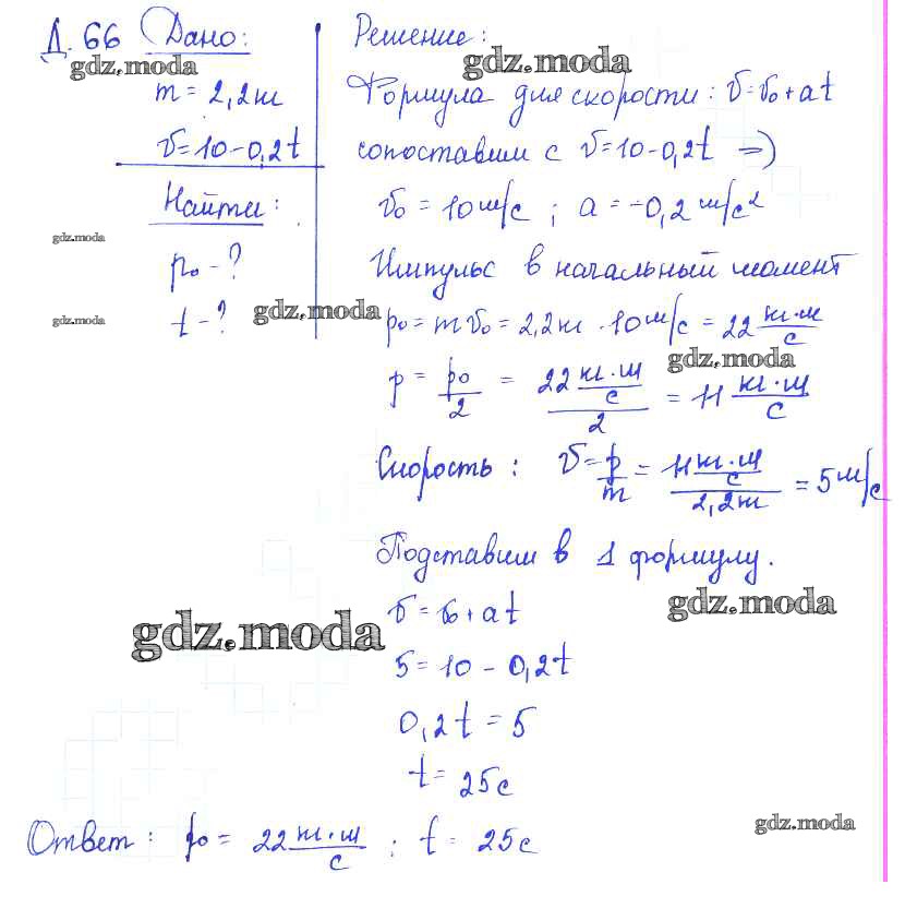 ГДЗ решение к заданию № 66 Физика 7-9 класс Сборник задач Лукашик В.И. Просвещение 2011 ФГОС бесплатно на гдз.мода!