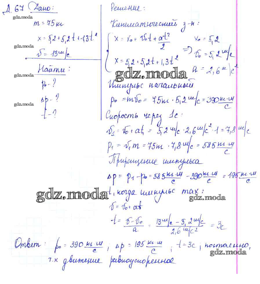 ОТВЕТ на задание № 67 Сборник задач по Физике 7-9 класс Лукашик