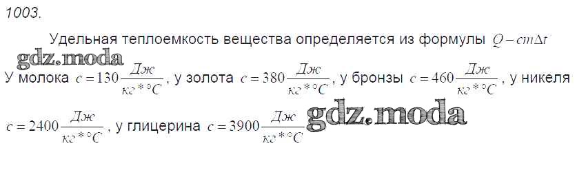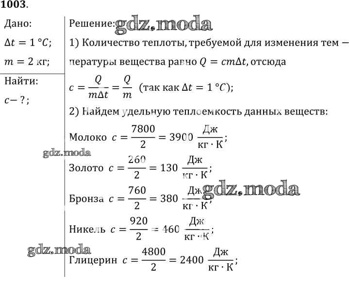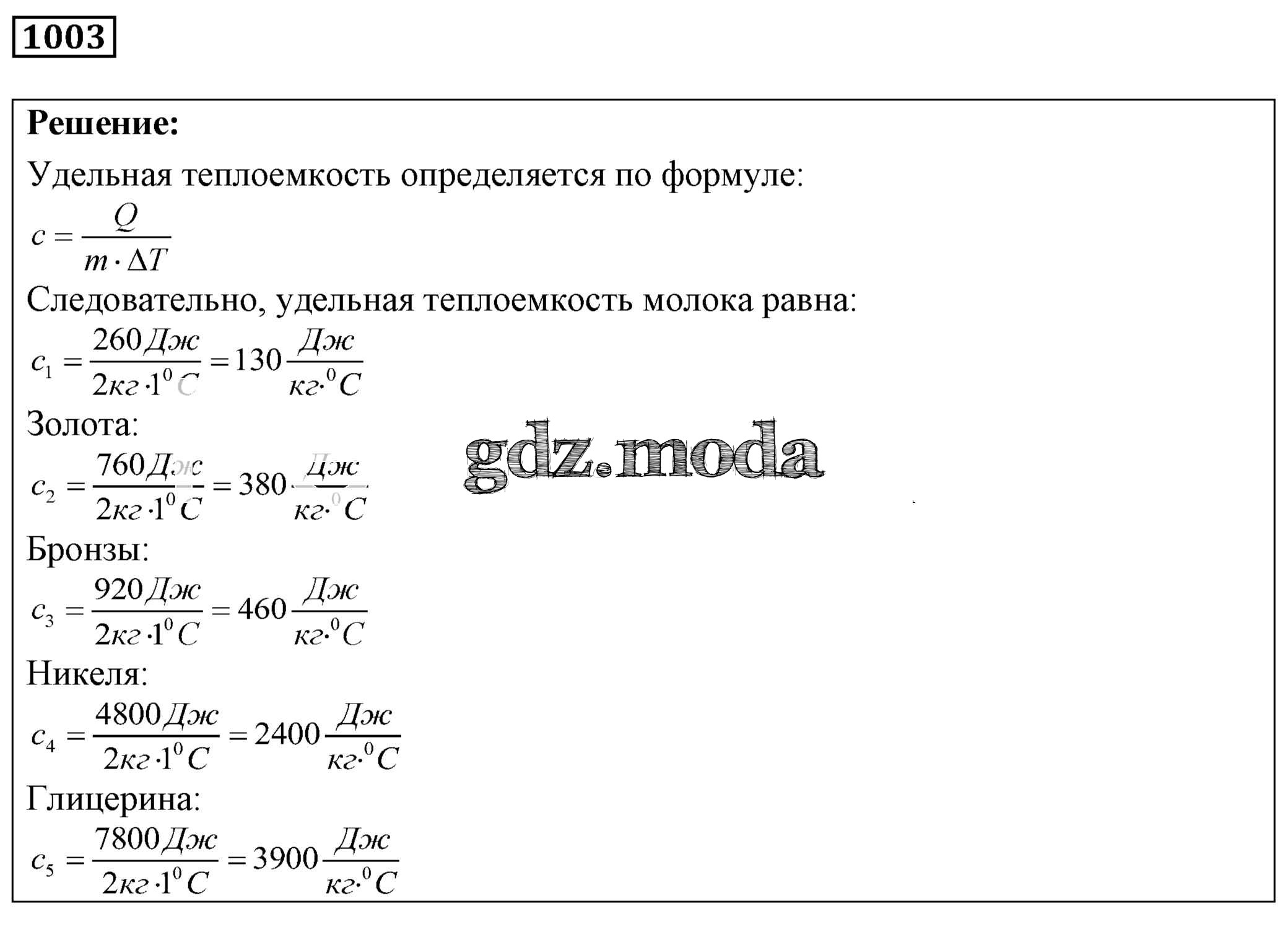ОТВЕТ на задание № 1003 Сборник задач по Физике 7-9 класс Лукашик