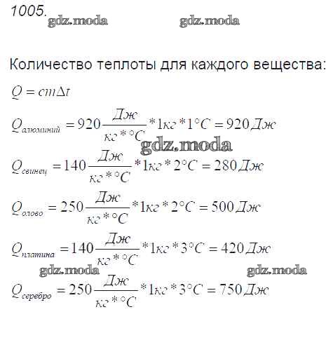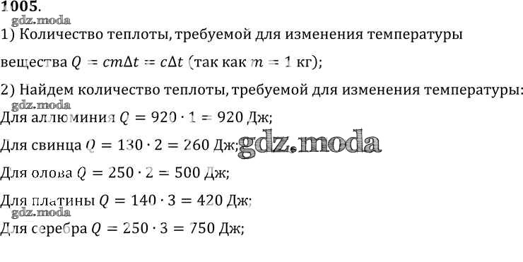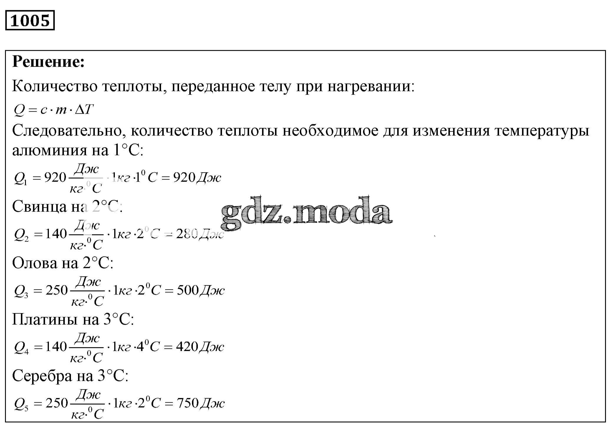 ОТВЕТ на задание № 1005 Сборник задач по Физике 7-9 класс Лукашик