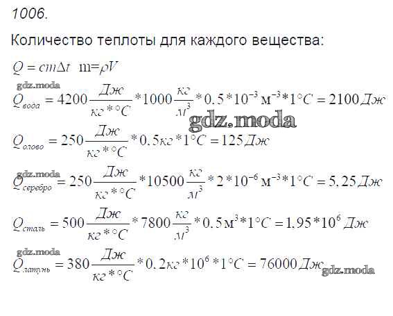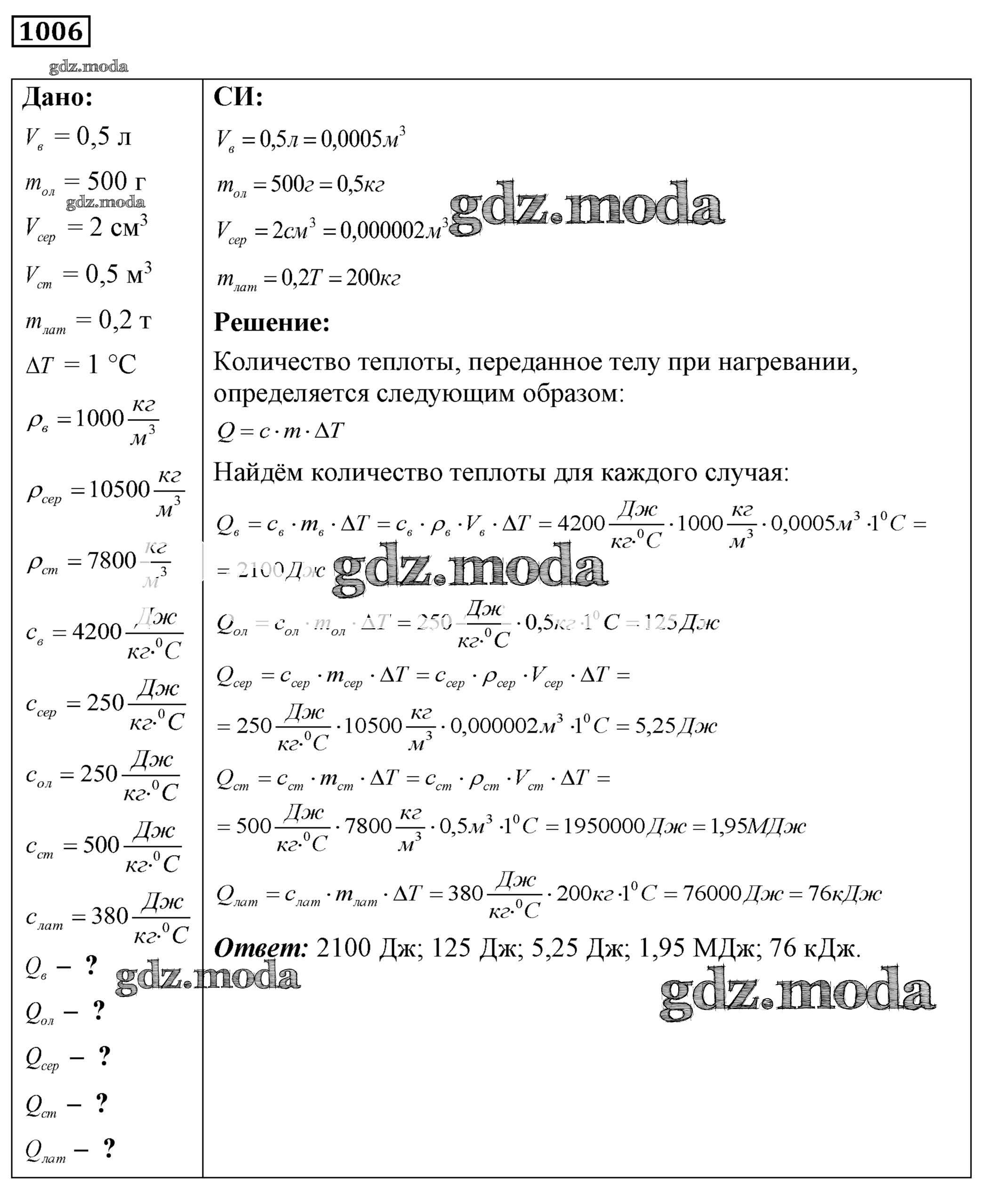 ОТВЕТ на задание № 1006 Сборник задач по Физике 7-9 класс Лукашик