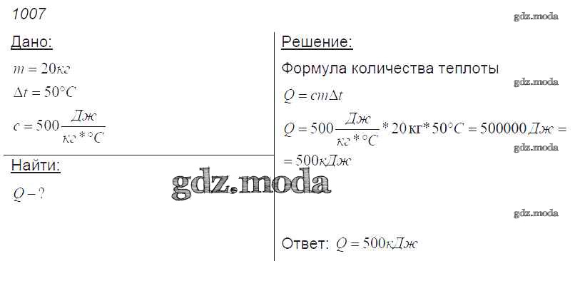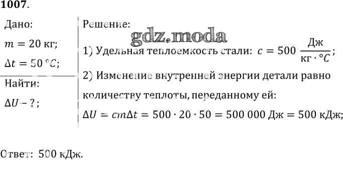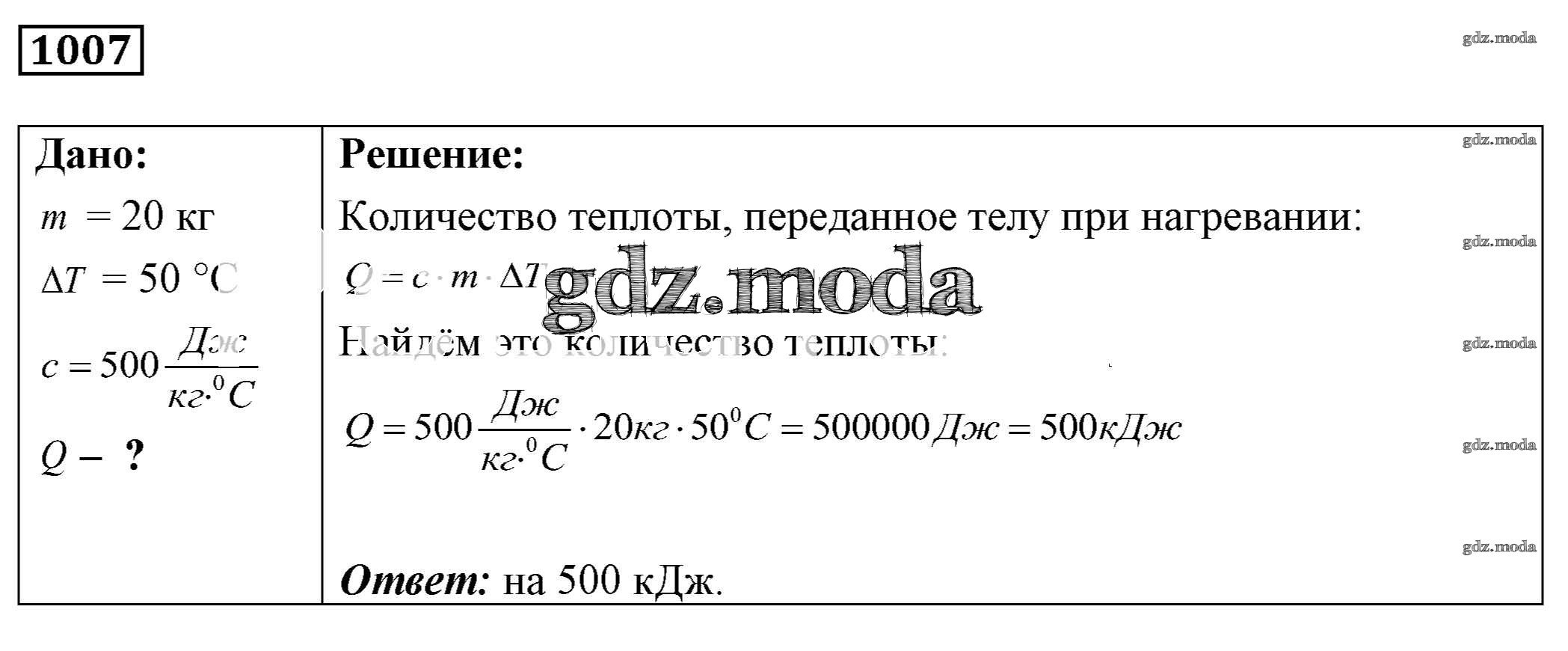 ГДЗ решение к заданию № 1007 Физика 7-9 класс Сборник задач Лукашик В.И. Просвещение 2011 ФГОС бесплатно на гдз.мода!