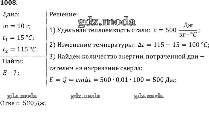ГДЗ решение к заданию № 1008 Физика 7-9 класс Сборник задач Лукашик В.И. Просвещение 2011 ФГОС бесплатно на гдз.мода!