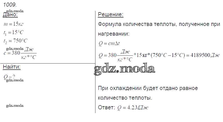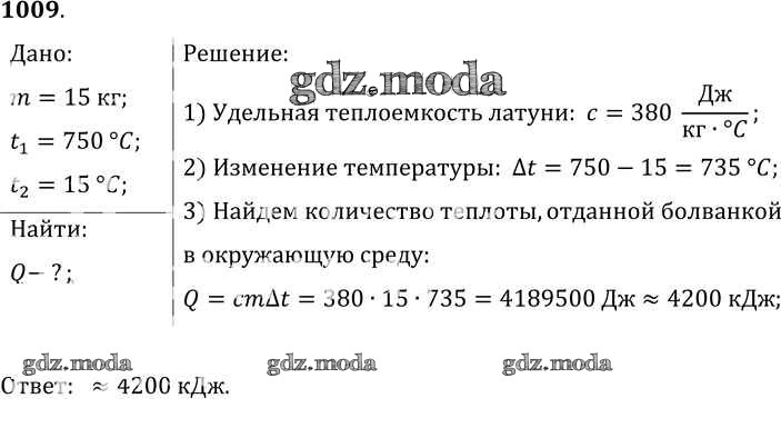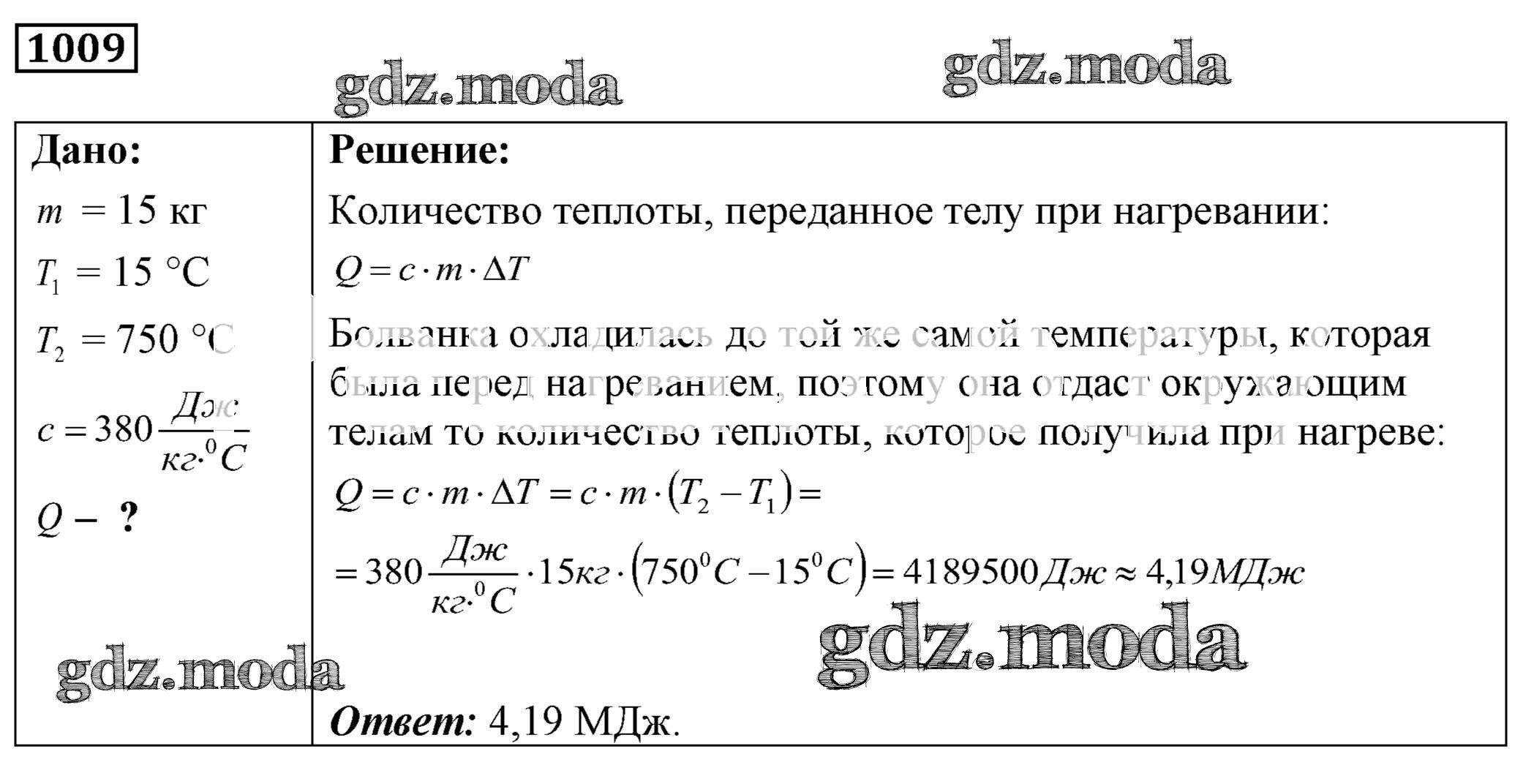 ГДЗ решение к заданию № 1009 Физика 7-9 класс Сборник задач Лукашик В.И. Просвещение 2011 ФГОС бесплатно на гдз.мода!