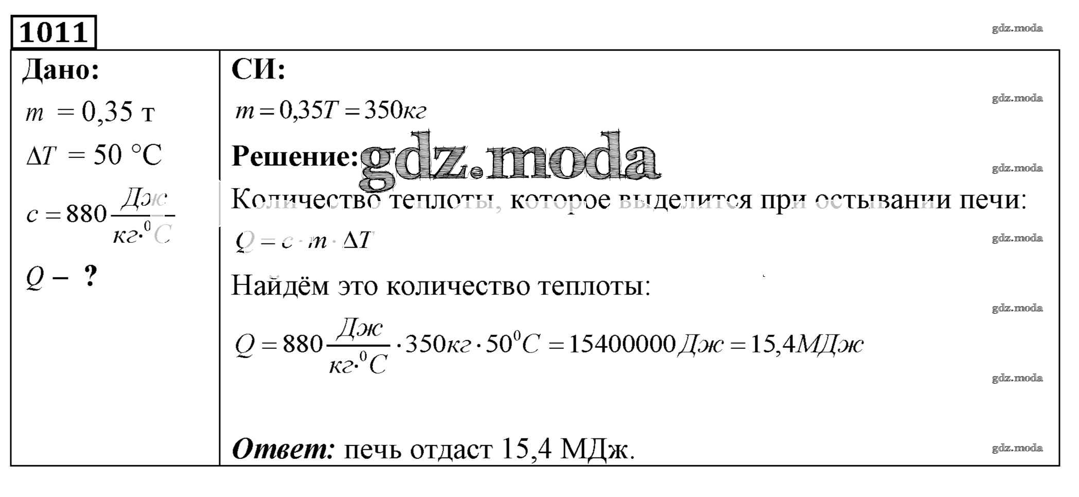 ОТВЕТ на задание № 1011 Сборник задач по Физике 7-9 класс Лукашик