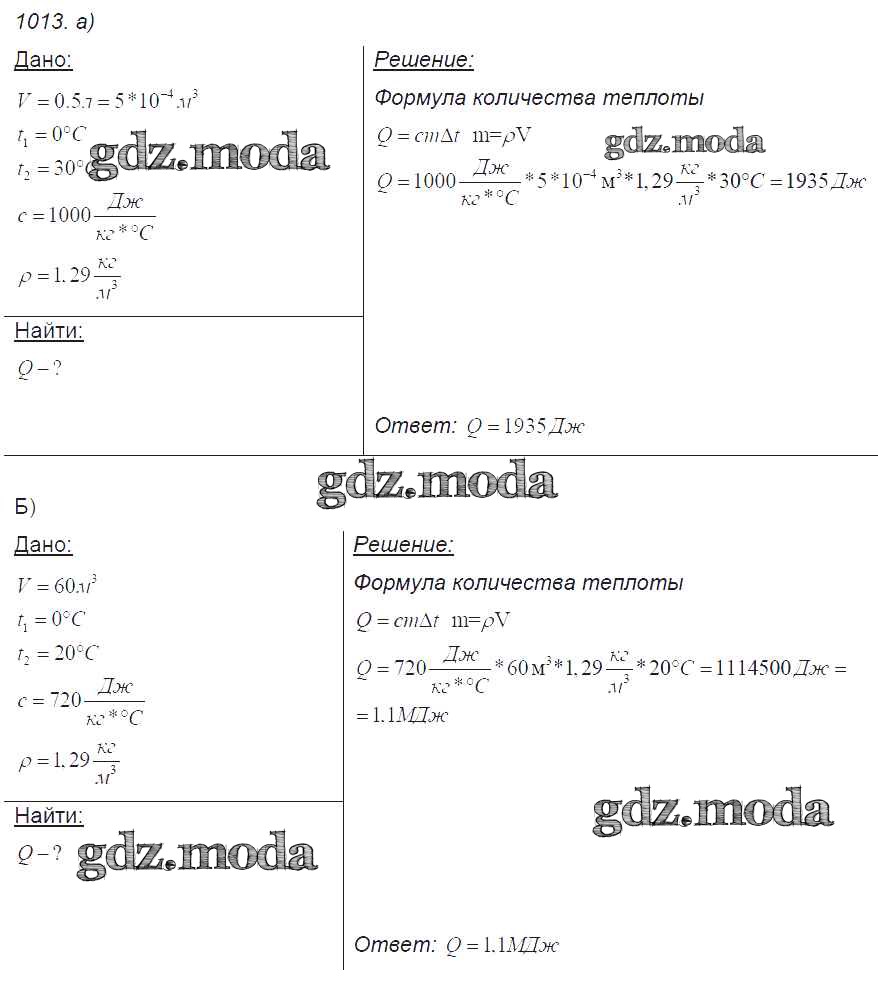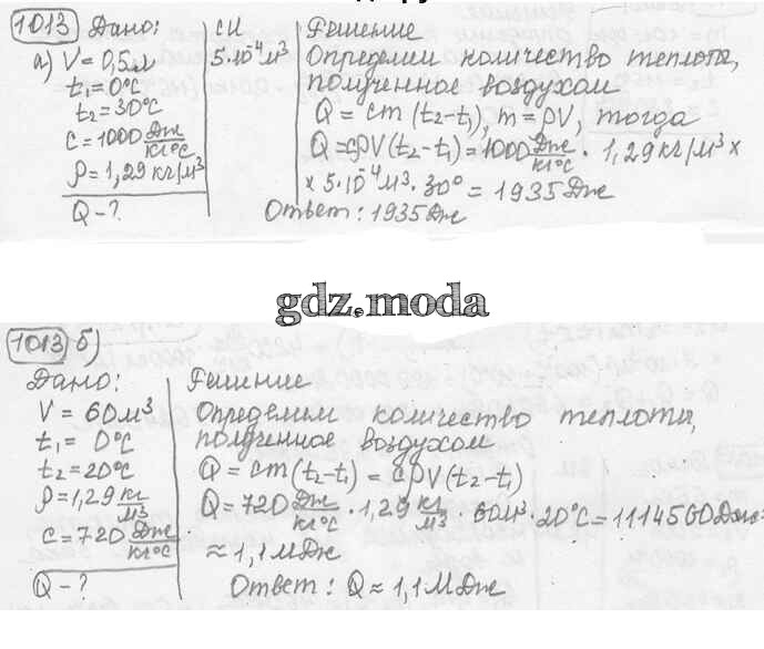 ОТВЕТ на задание № 1013 Сборник задач по Физике 7-9 класс Лукашик