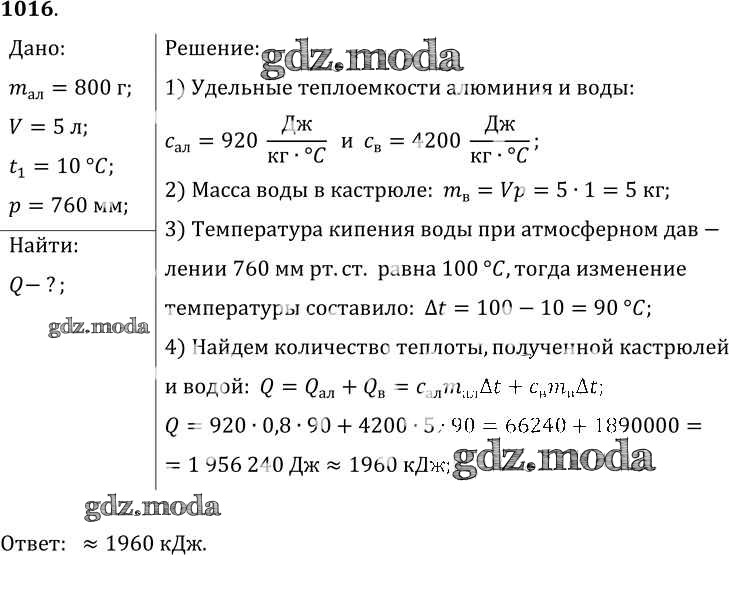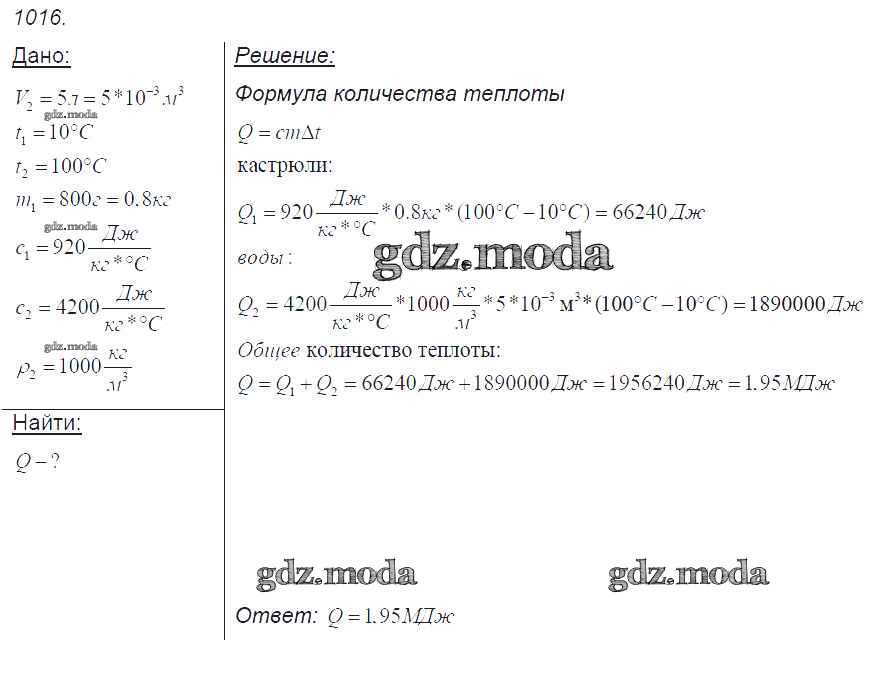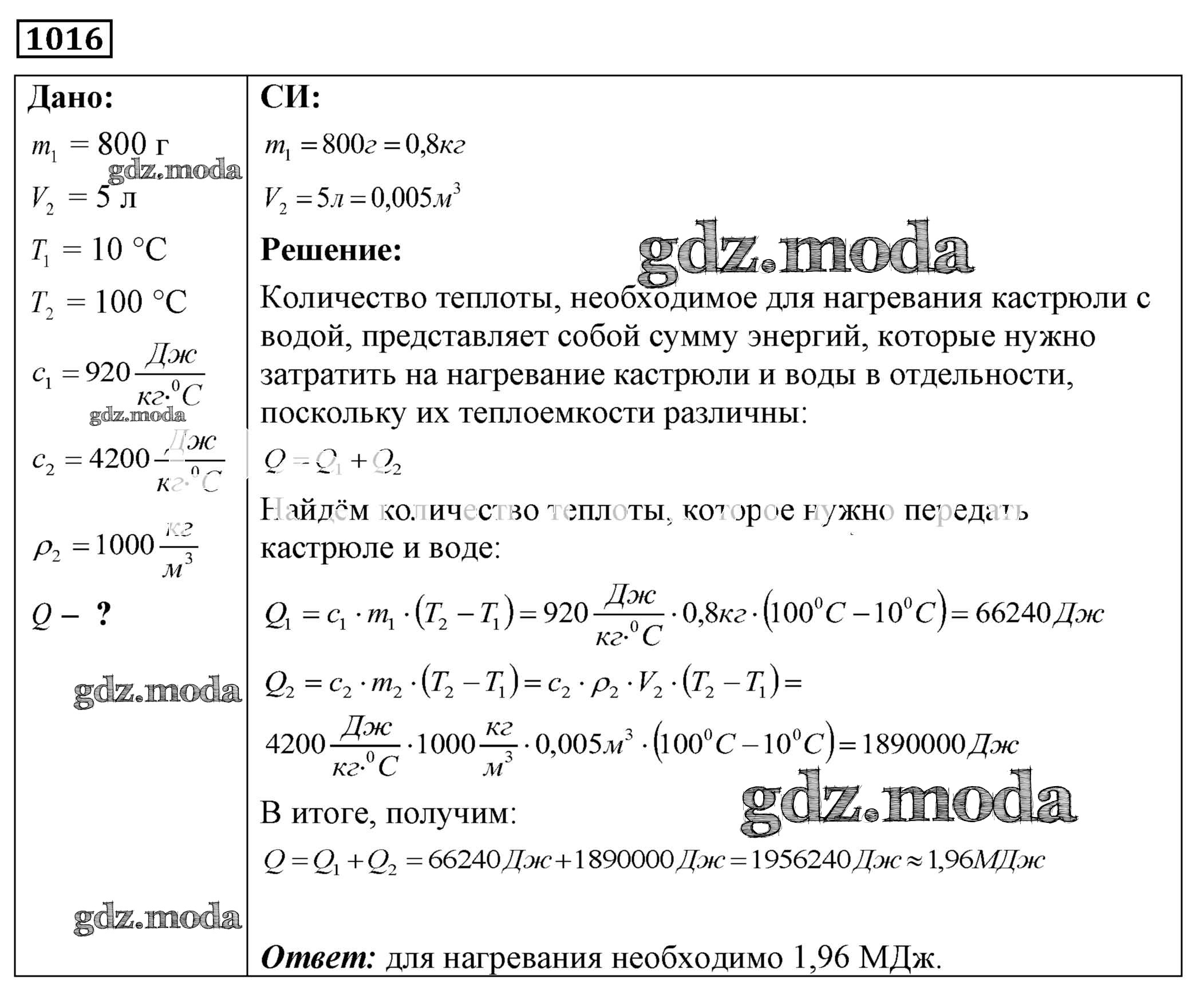 ОТВЕТ на задание № 1016 Сборник задач по Физике 7-9 класс Лукашик