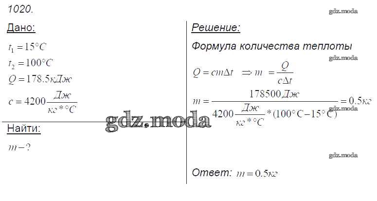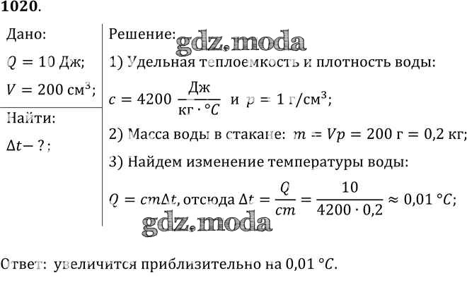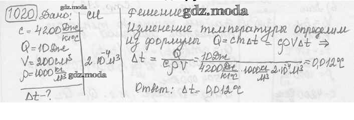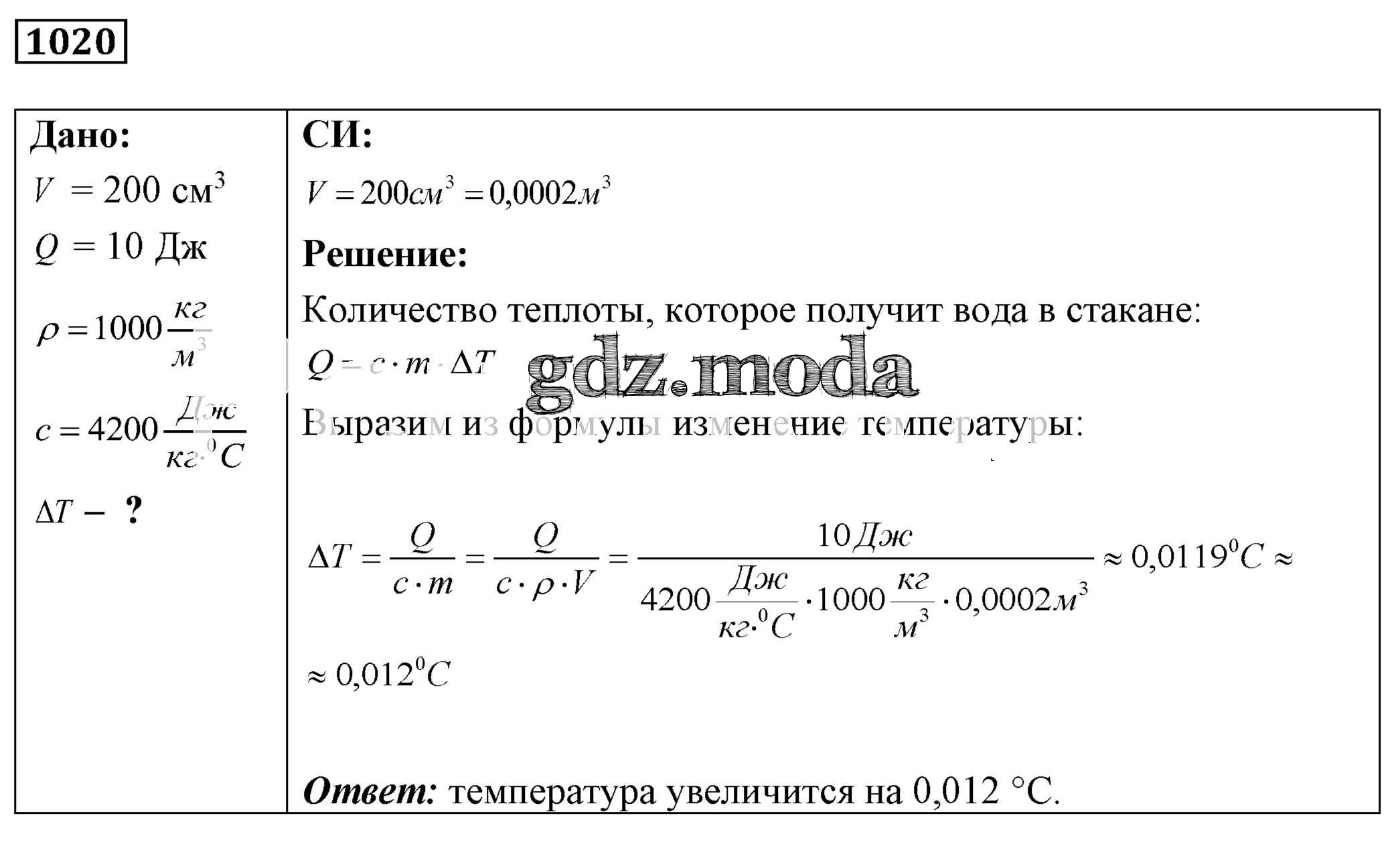ОТВЕТ на задание № 1020 Сборник задач по Физике 7-9 класс Лукашик