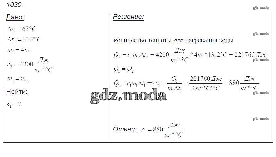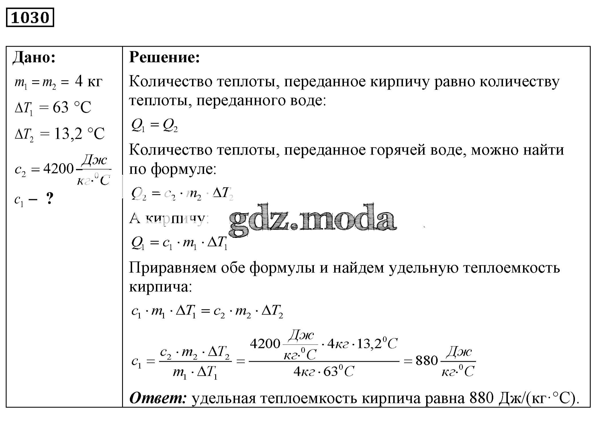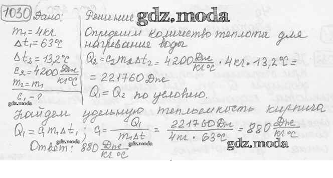 ОТВЕТ на задание № 1030 Сборник задач по Физике 7-9 класс Лукашик