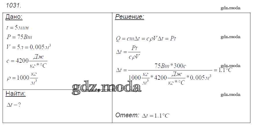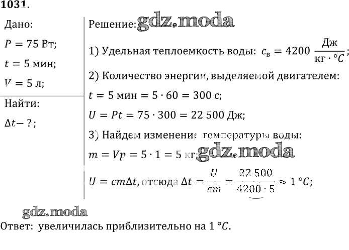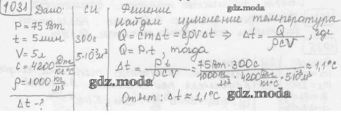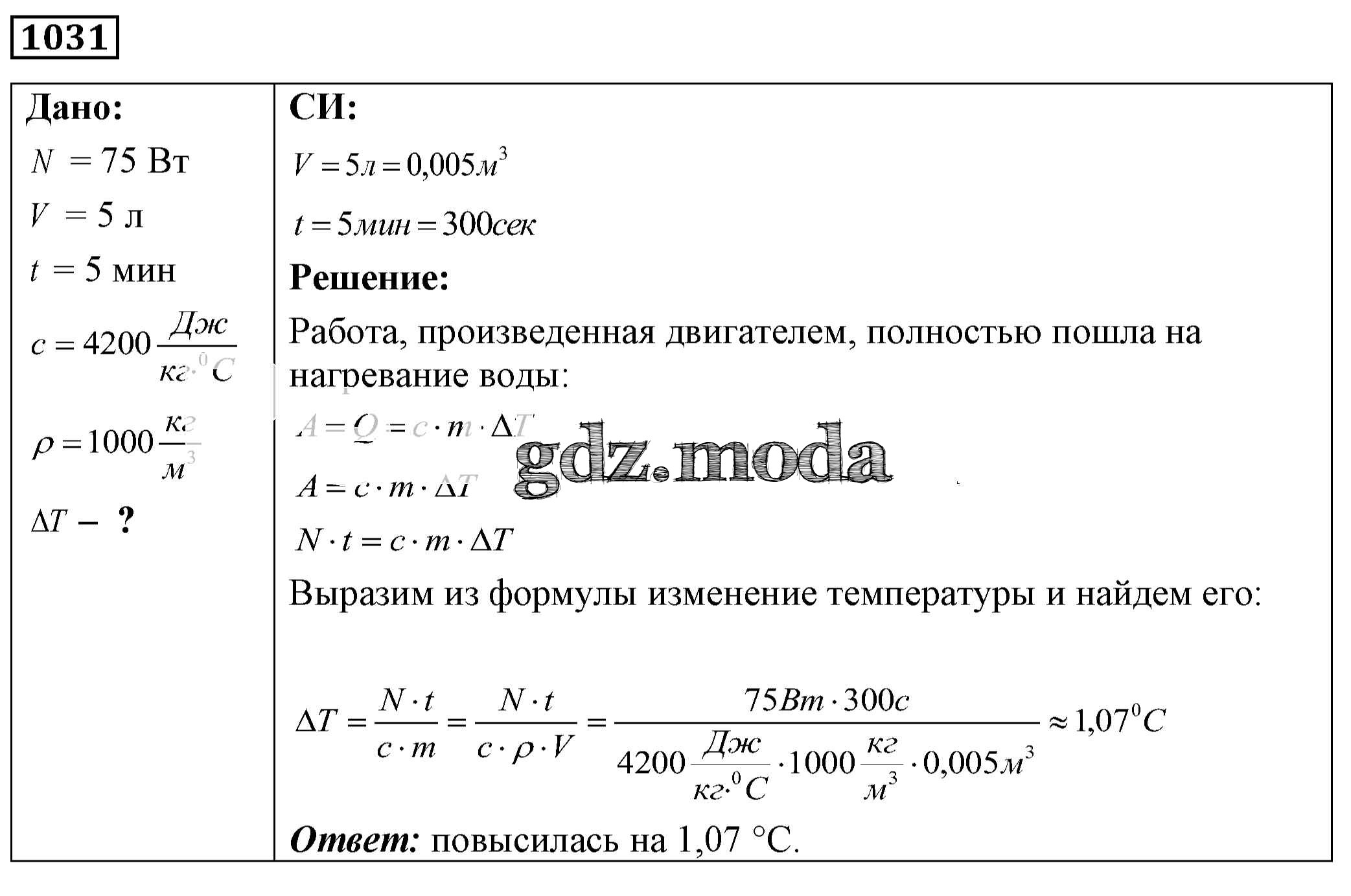 ОТВЕТ на задание № 1031 Сборник задач по Физике 7-9 класс Лукашик