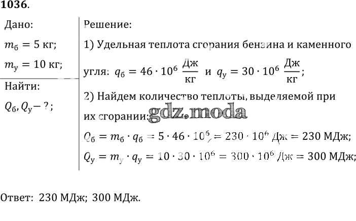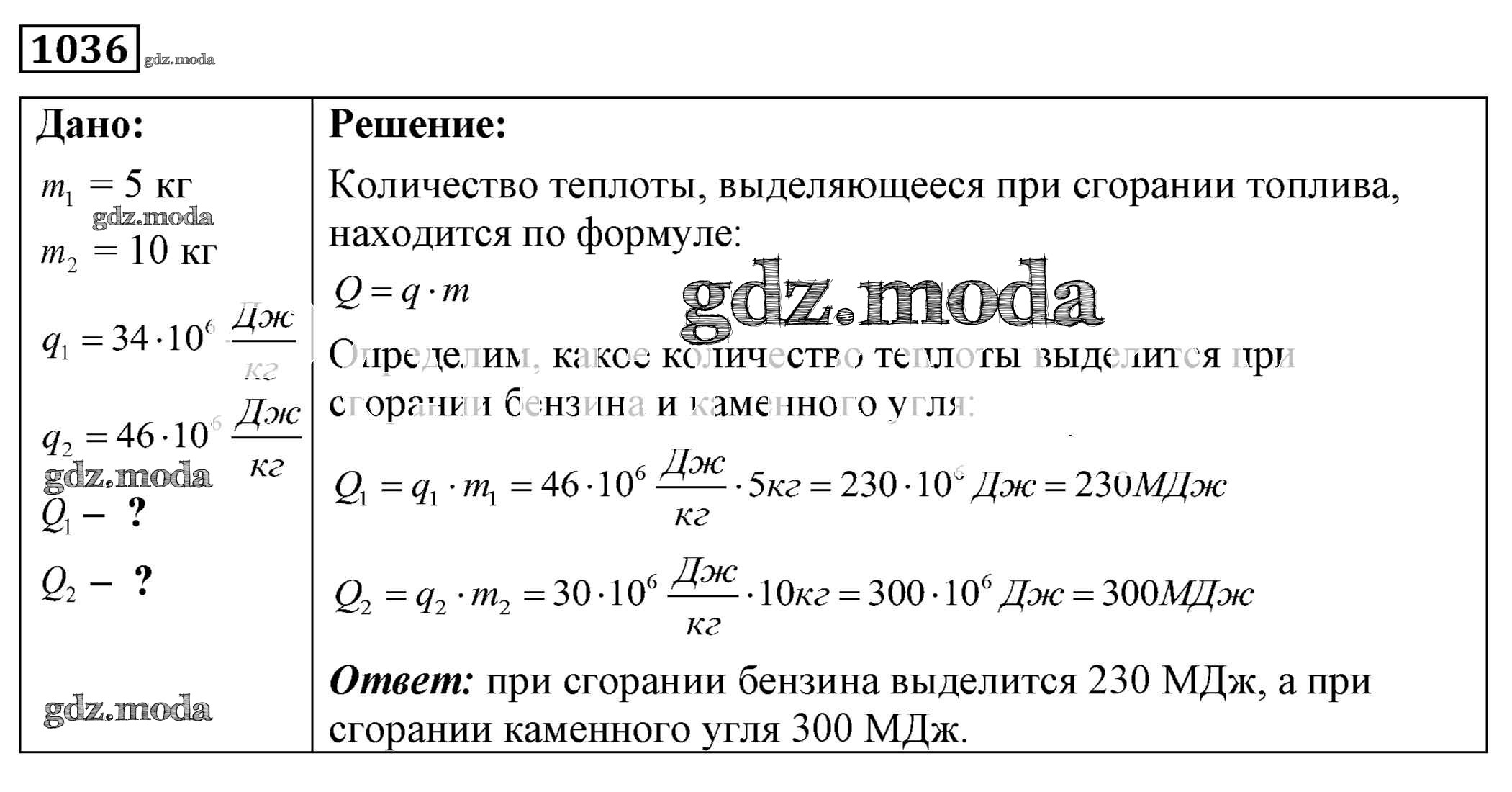 ОТВЕТ на задание № 1036 Сборник задач по Физике 7-9 класс Лукашик