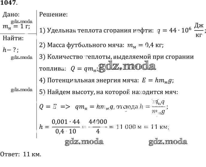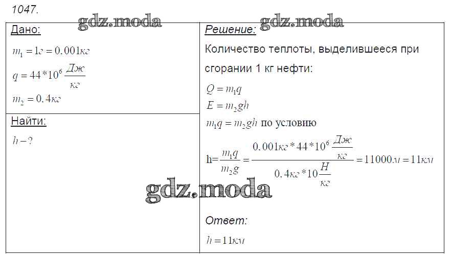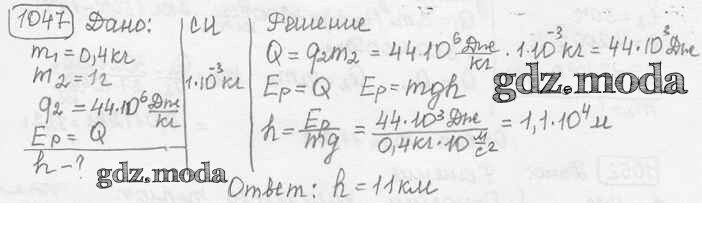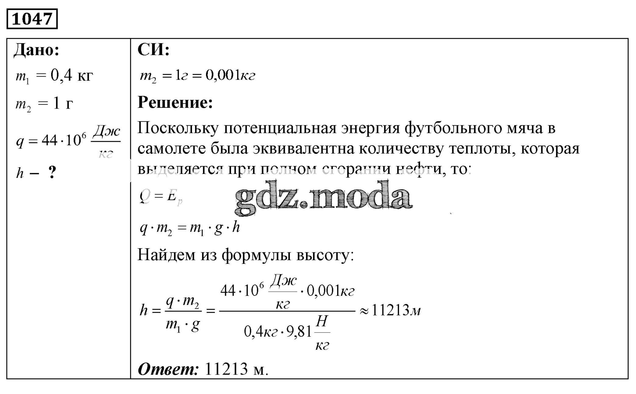 ОТВЕТ на задание № 1047 Сборник задач по Физике 7-9 класс Лукашик