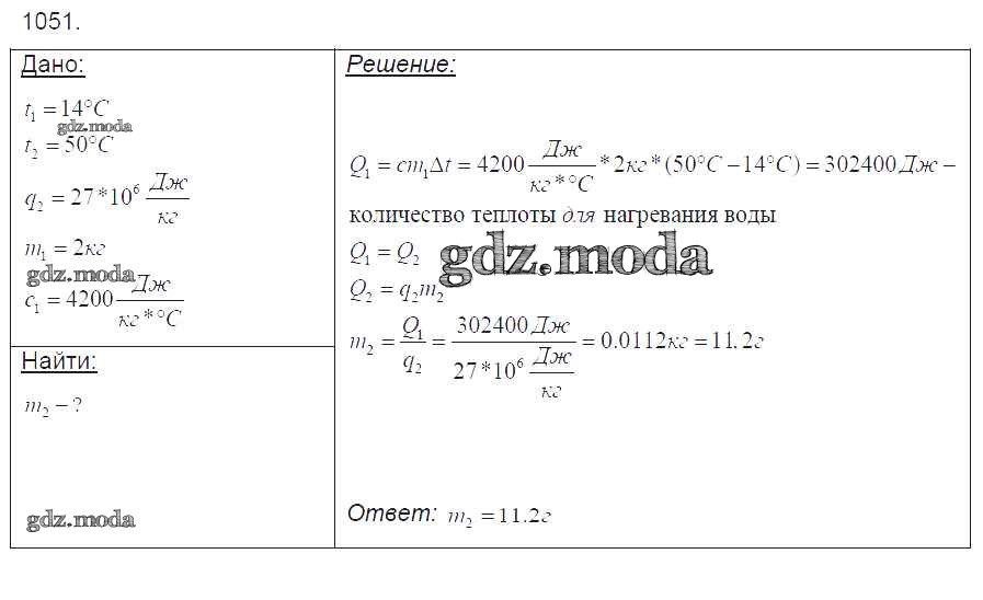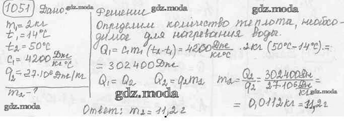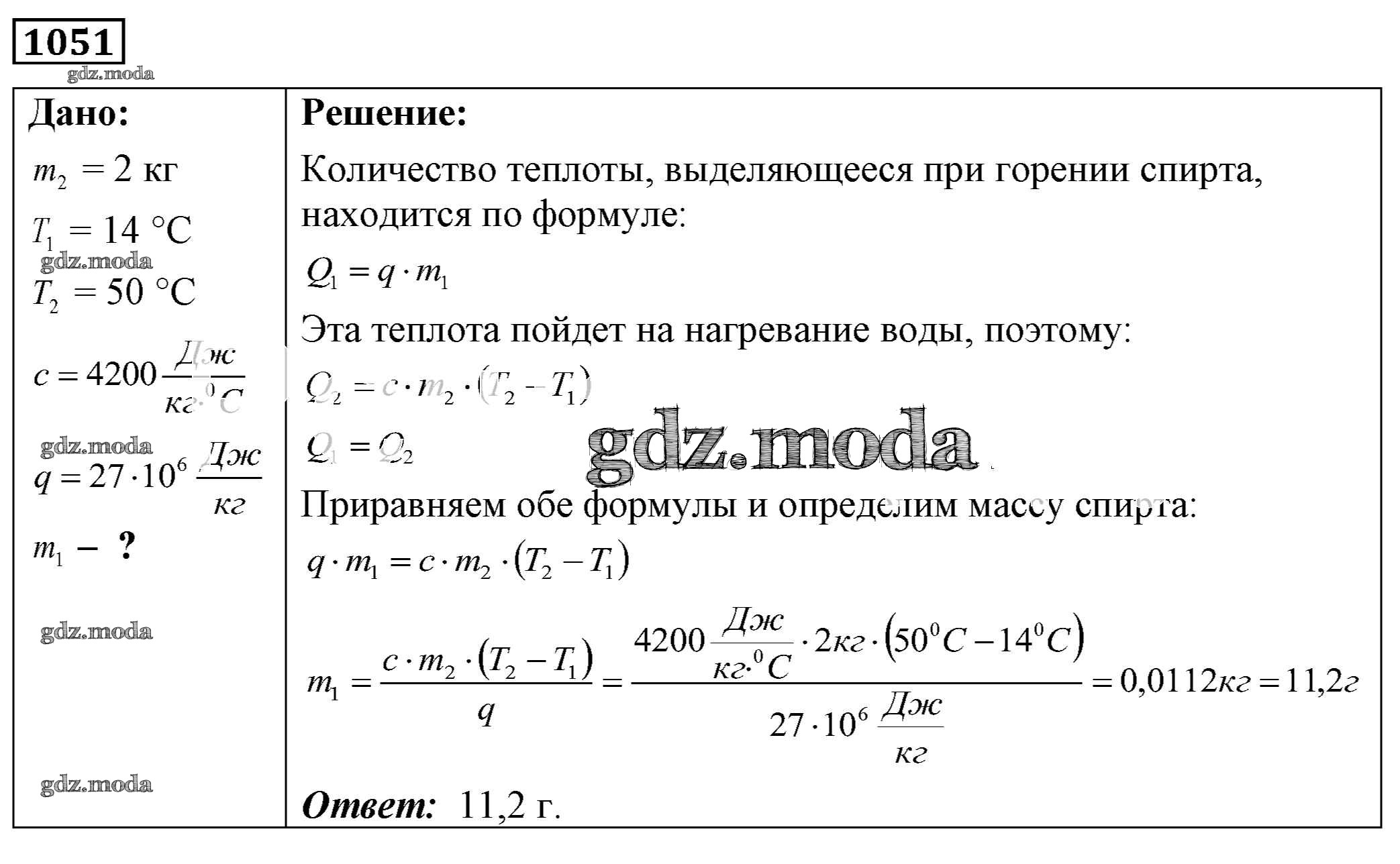ОТВЕТ на задание № 1051 Сборник задач по Физике 7-9 класс Лукашик