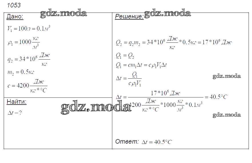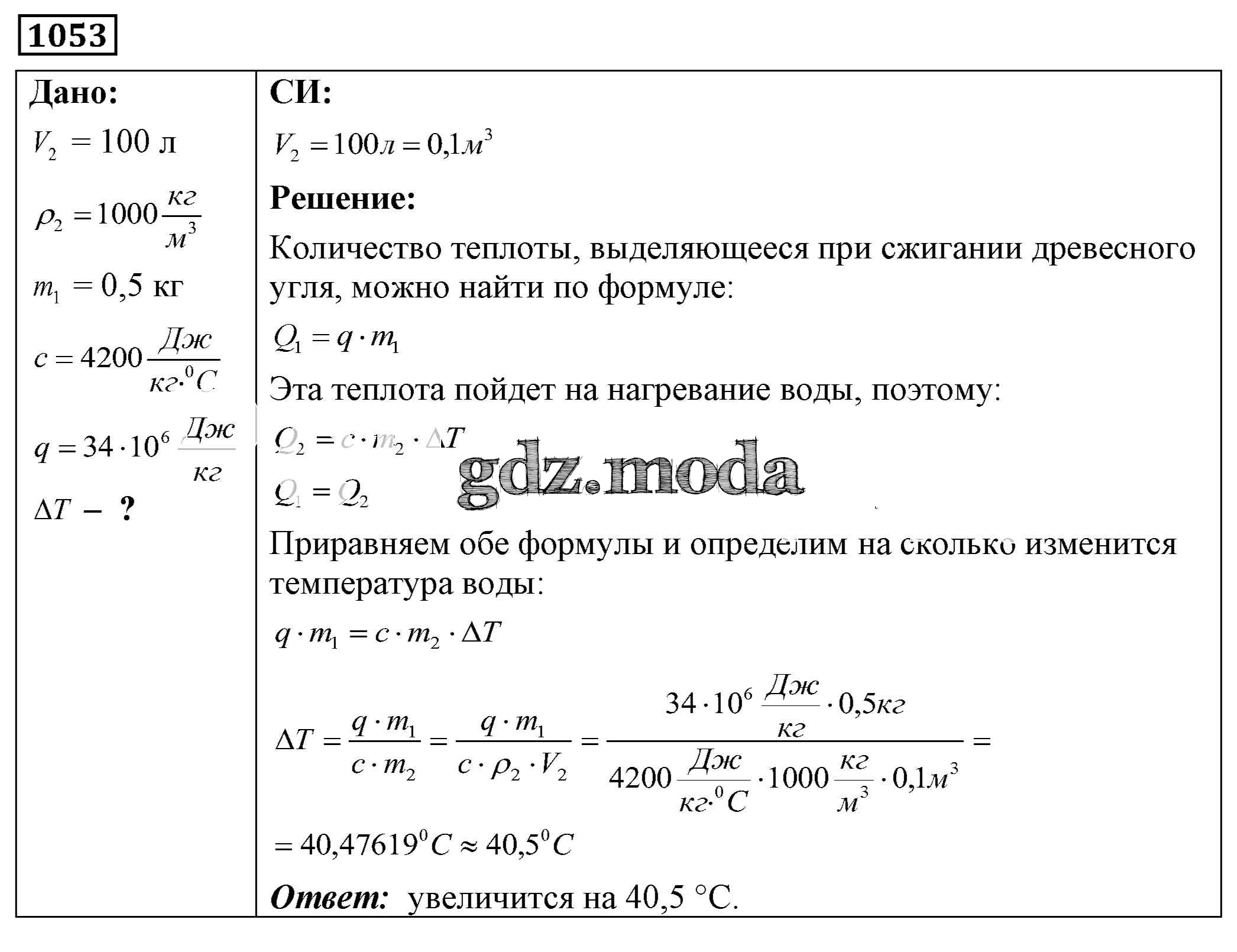 ОТВЕТ на задание № 1053 Сборник задач по Физике 7-9 класс Лукашик