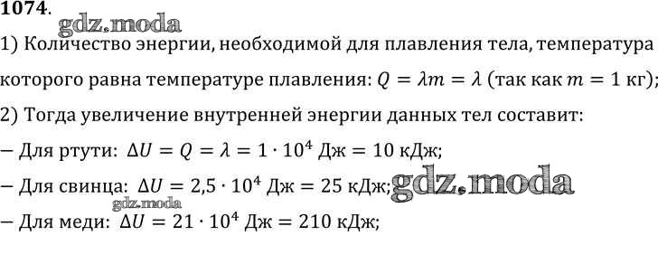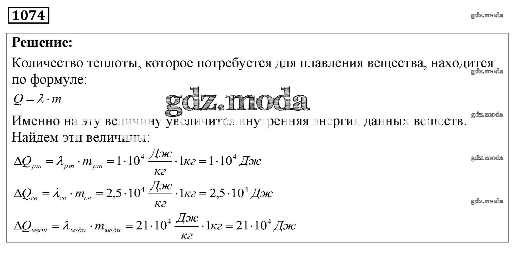 ОТВЕТ на задание № 1074 Сборник задач по Физике 7-9 класс Лукашик
