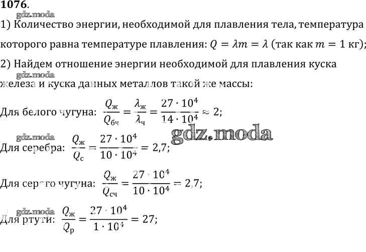 ОТВЕТ на задание № 1076 Сборник задач по Физике 7-9 класс Лукашик