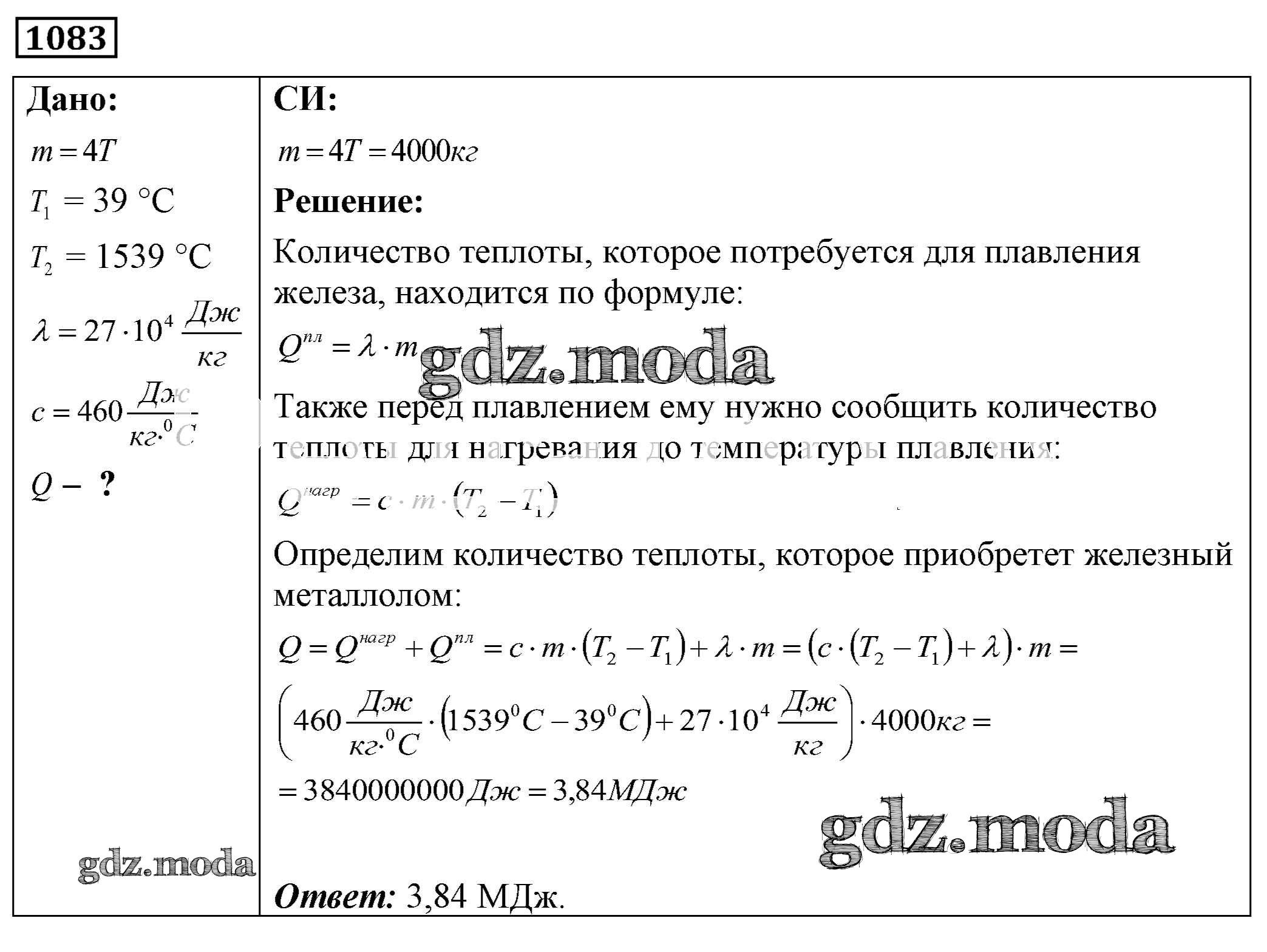 ОТВЕТ на задание № 1083 Сборник задач по Физике 7-9 класс Лукашик