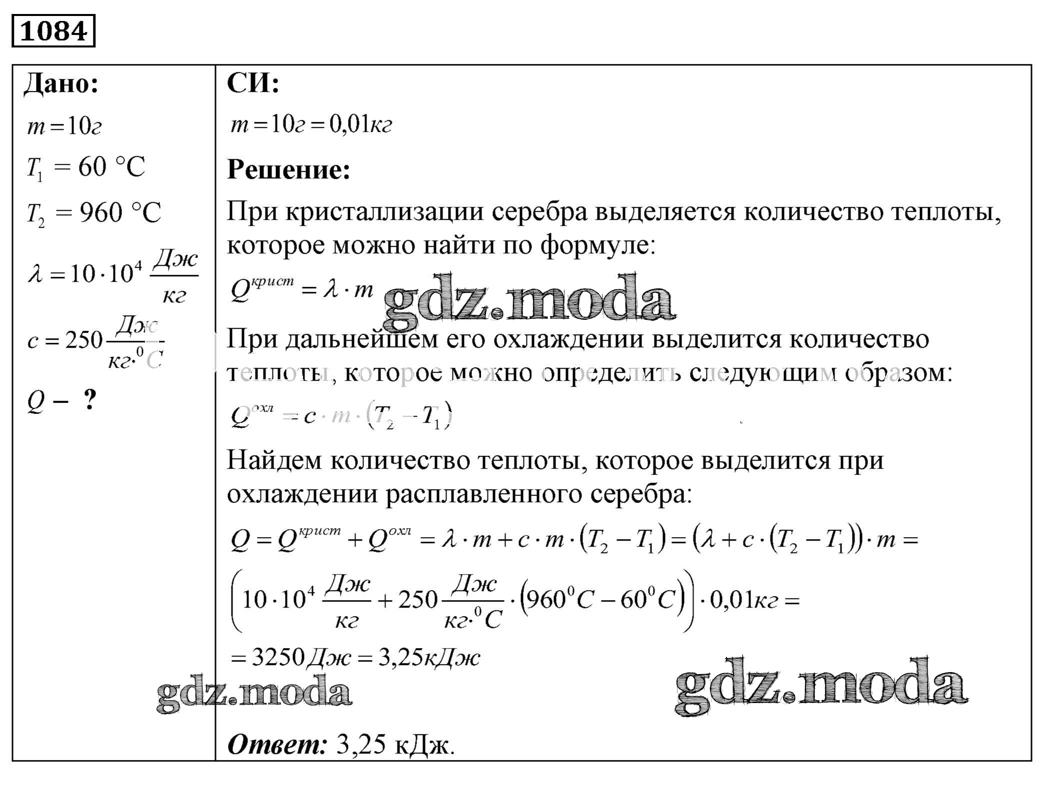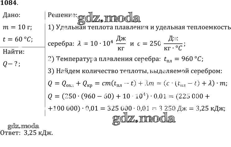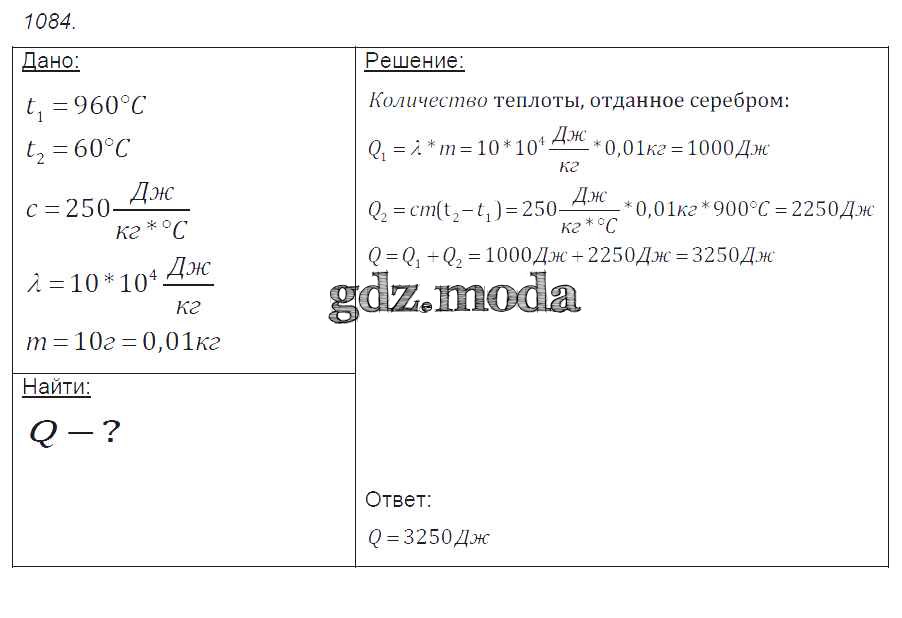 ОТВЕТ на задание № 1084 Сборник задач по Физике 7-9 класс Лукашик