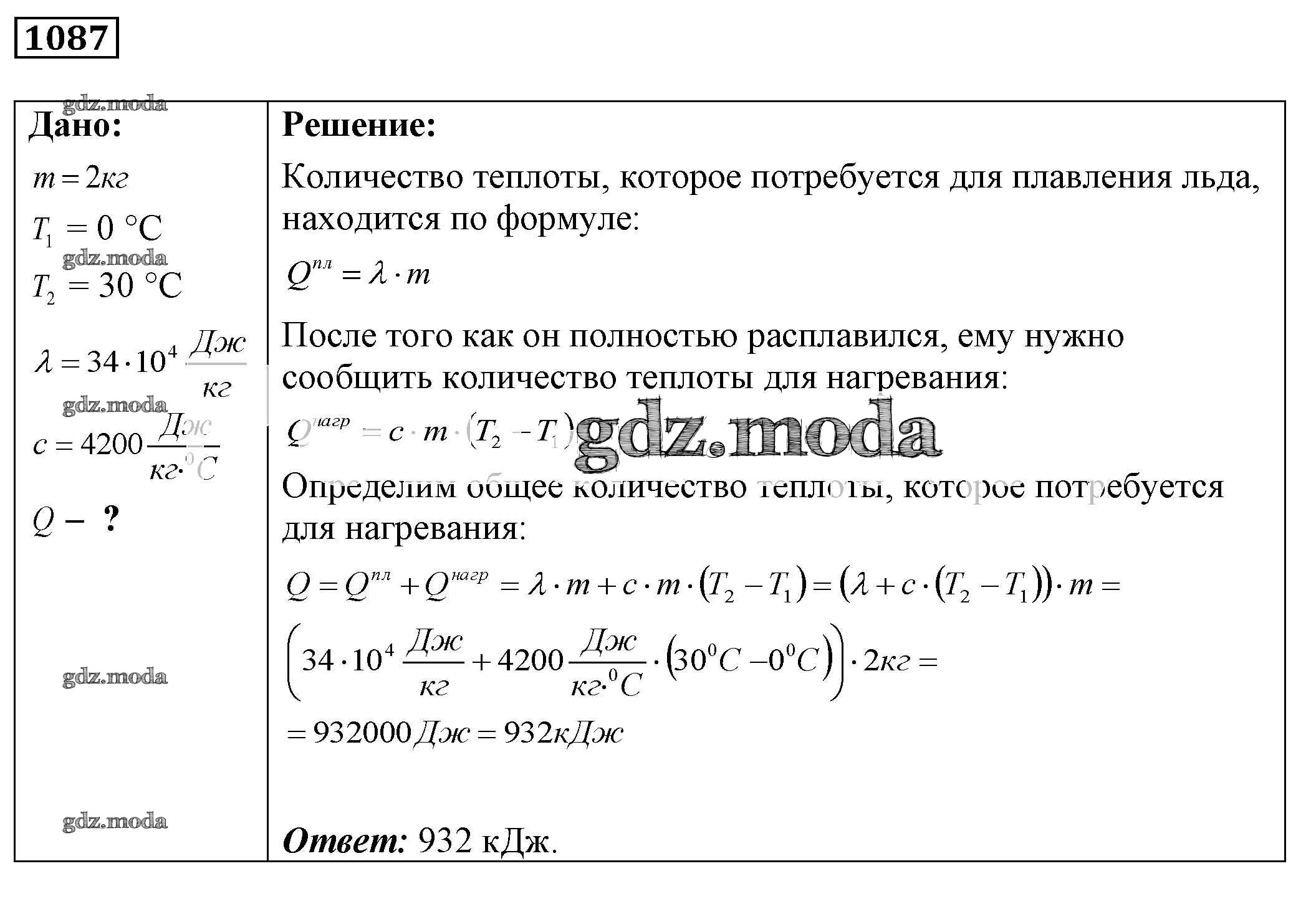 ОТВЕТ на задание № 1087 Сборник задач по Физике 7-9 класс Лукашик