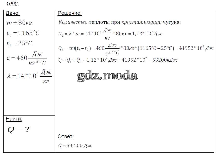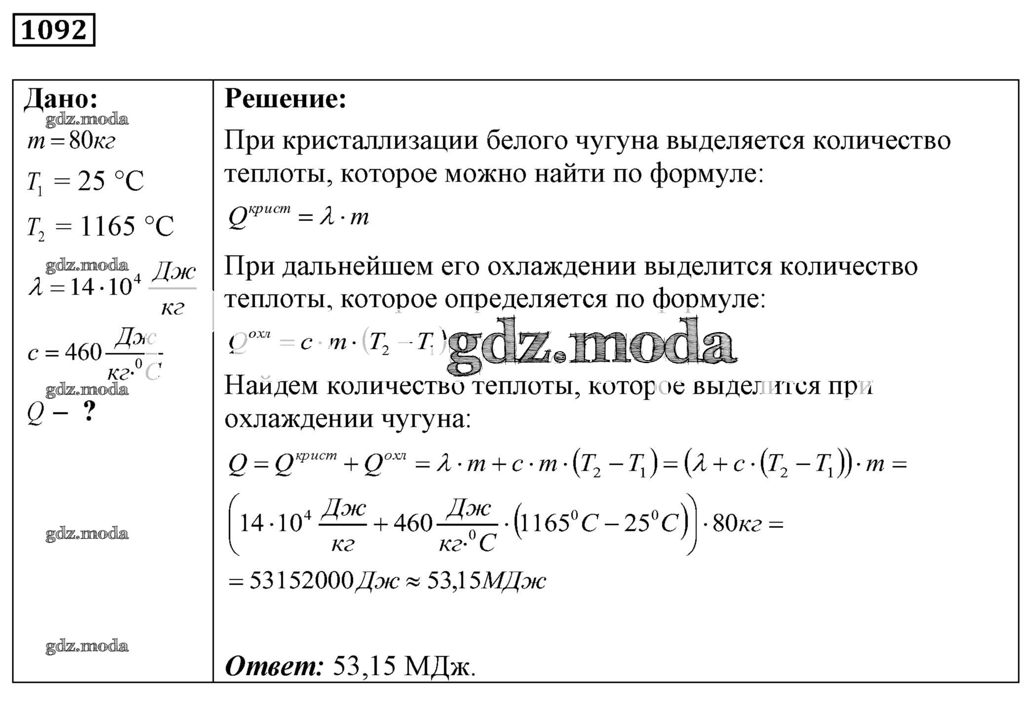 ОТВЕТ на задание № 1092 Сборник задач по Физике 7-9 класс Лукашик