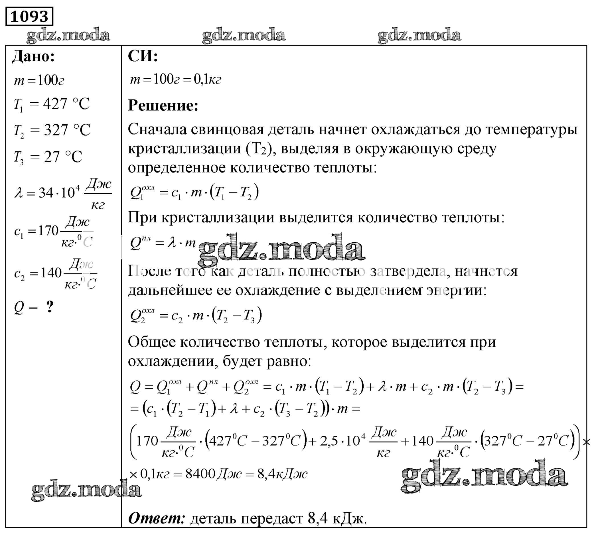 ОТВЕТ на задание № 1093 Сборник задач по Физике 7-9 класс Лукашик