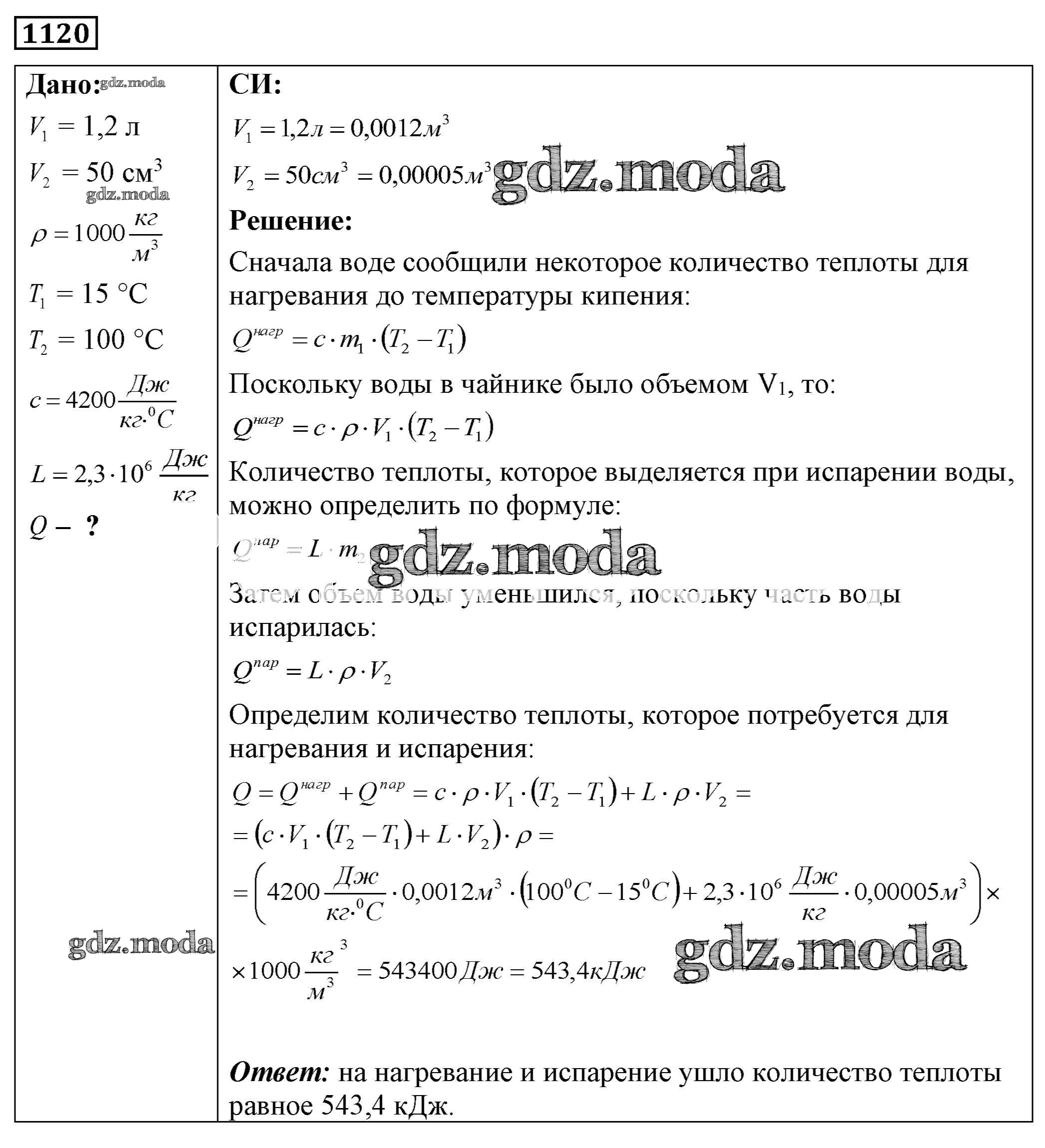 ОТВЕТ на задание № 1120 Сборник задач по Физике 7-9 класс Лукашик