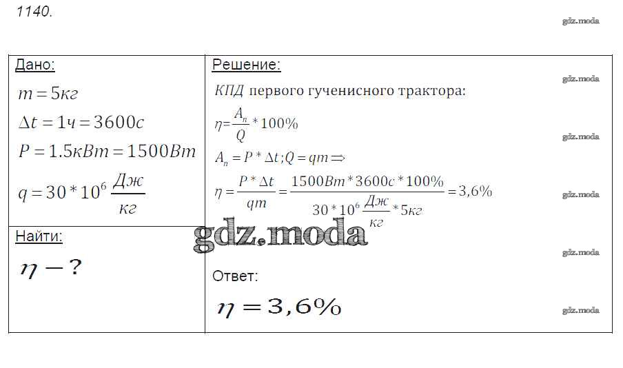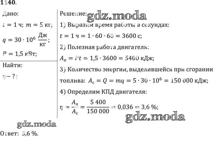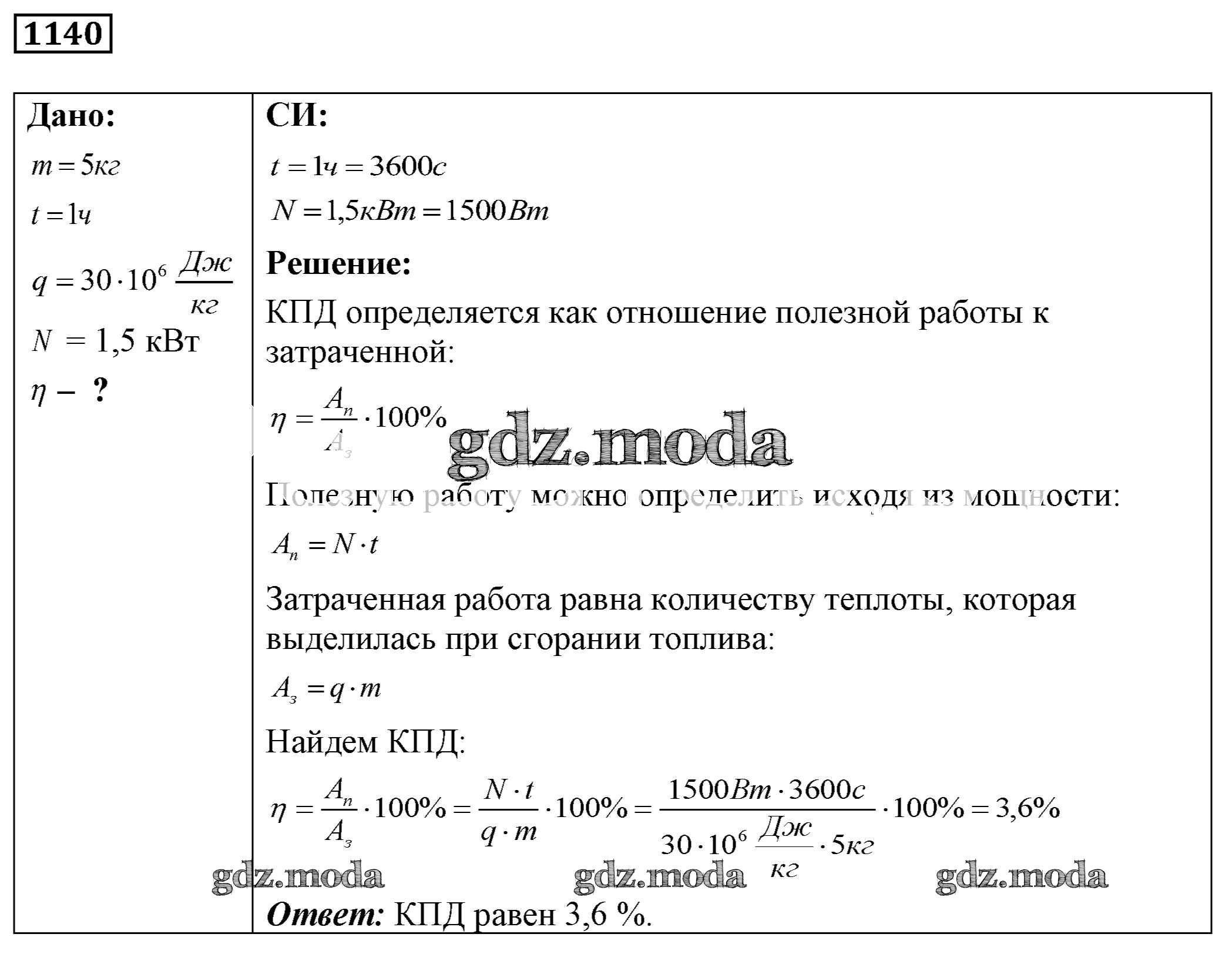 ОТВЕТ на задание № 1140 Сборник задач по Физике 7-9 класс Лукашик