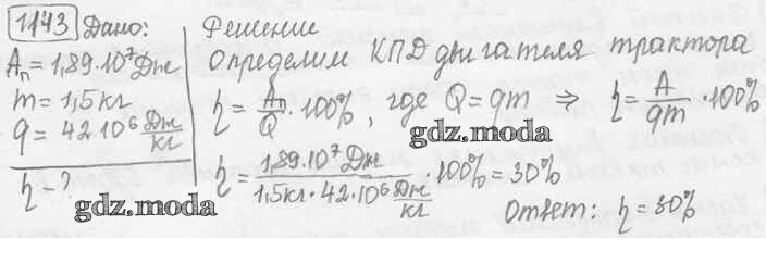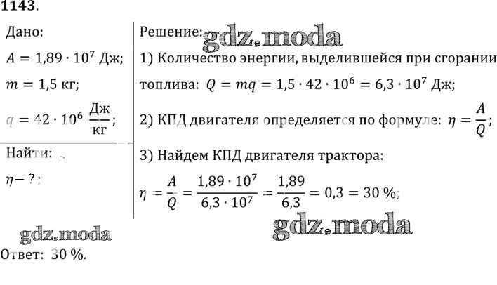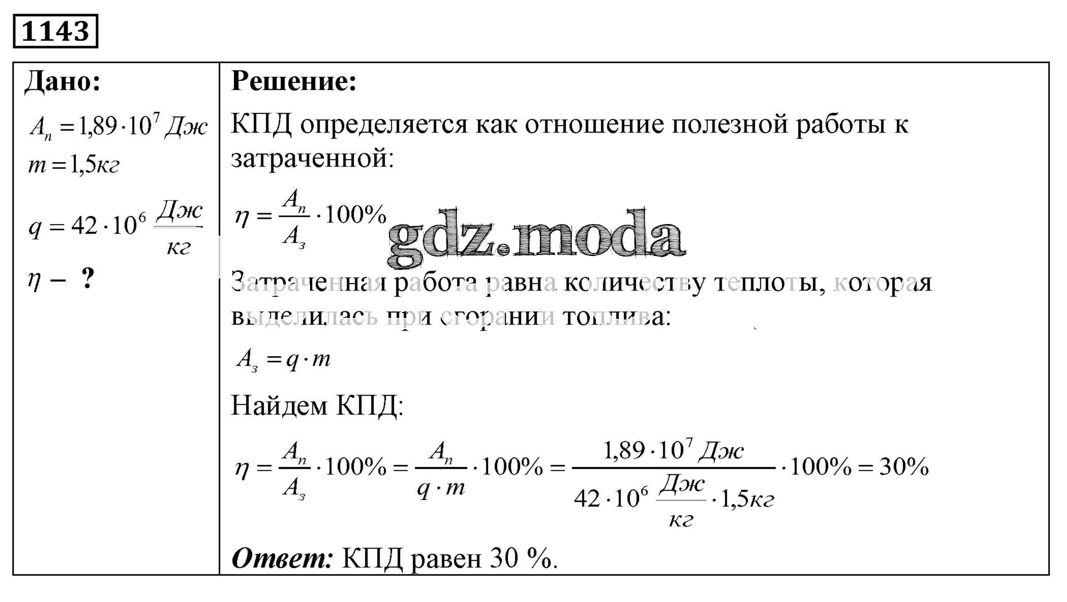 ОТВЕТ на задание № 1143 Сборник задач по Физике 7-9 класс Лукашик
