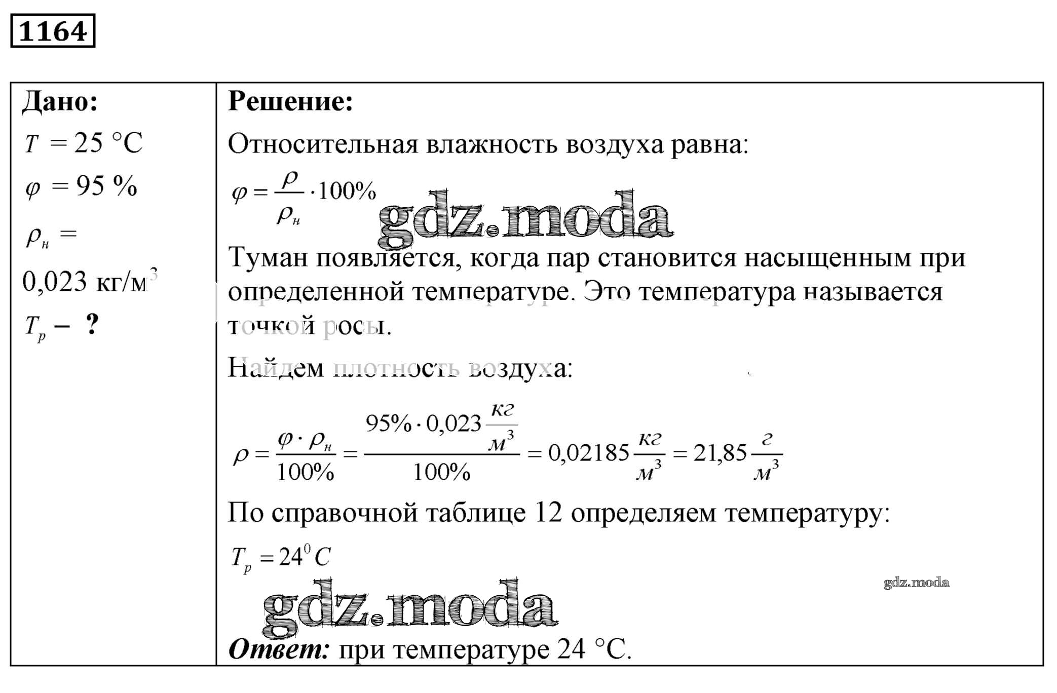 ОТВЕТ на задание № 1164 Сборник задач по Физике 7-9 класс Лукашик