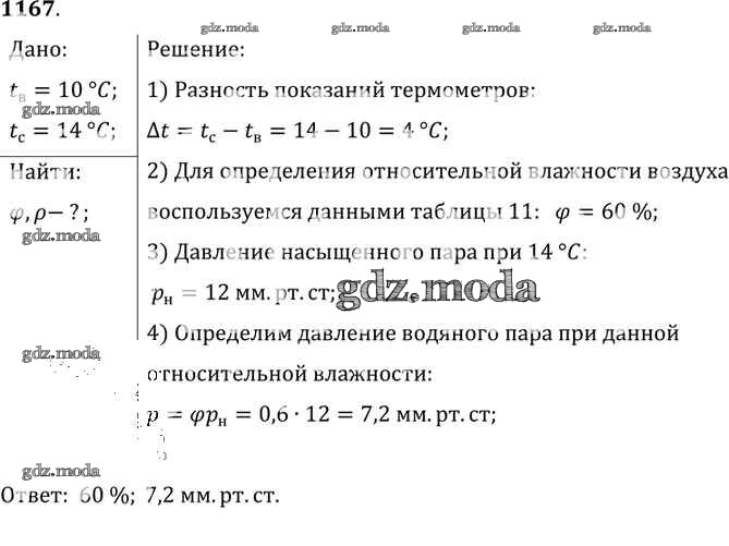 ОТВЕТ на задание № 1167 Сборник задач по Физике 7-9 класс Лукашик