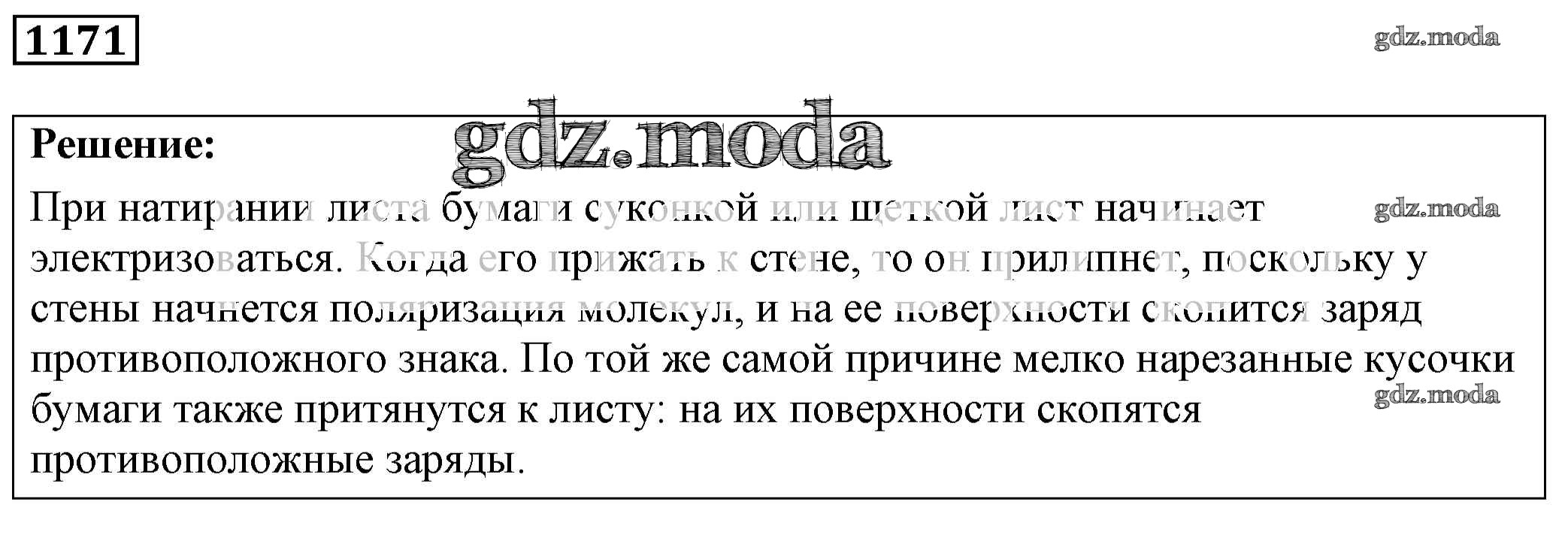 ОТВЕТ на задание № 1171 Сборник задач по Физике 7-9 класс Лукашик